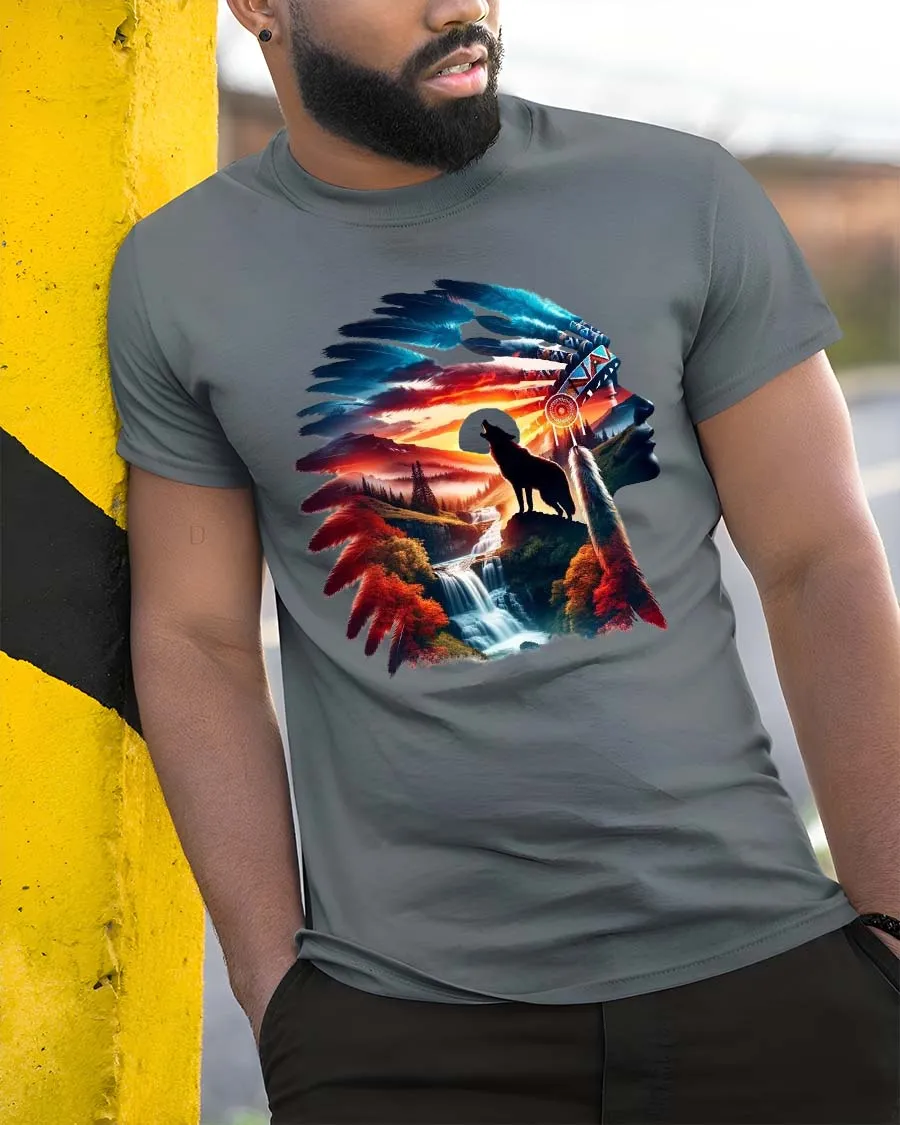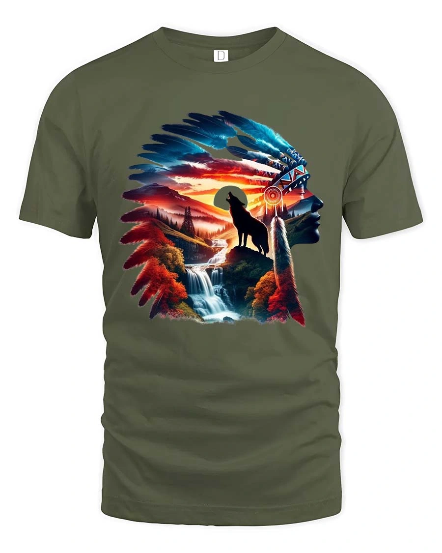 Native Spirit Wolf Feather T Shirt Nature Art Graphic Tee blends powerful symbolism with breathtaking natural beauty in one striking design.