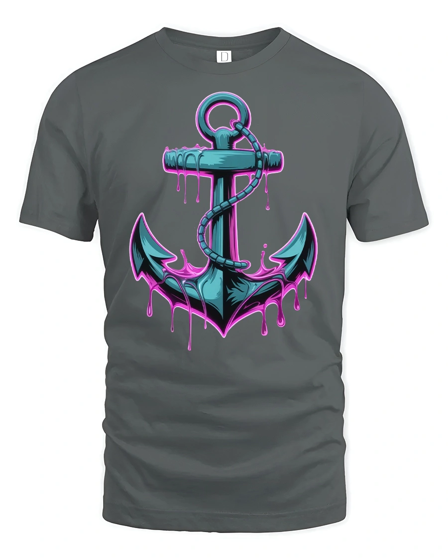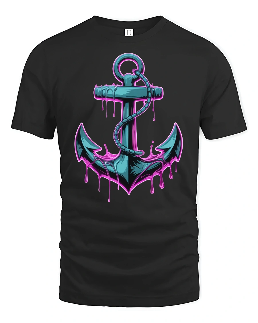 Featuring a striking dripping anchor in vivid neon blue and purple hues, this tee captures the spirit of the sea with a touch of edgy urban art.