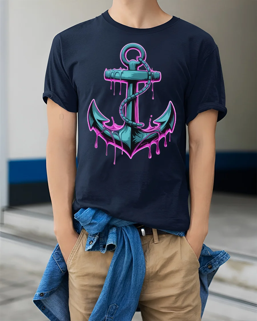Neon Anchor T-Shirt blends bold nautical vibes with modern streetwear flair.