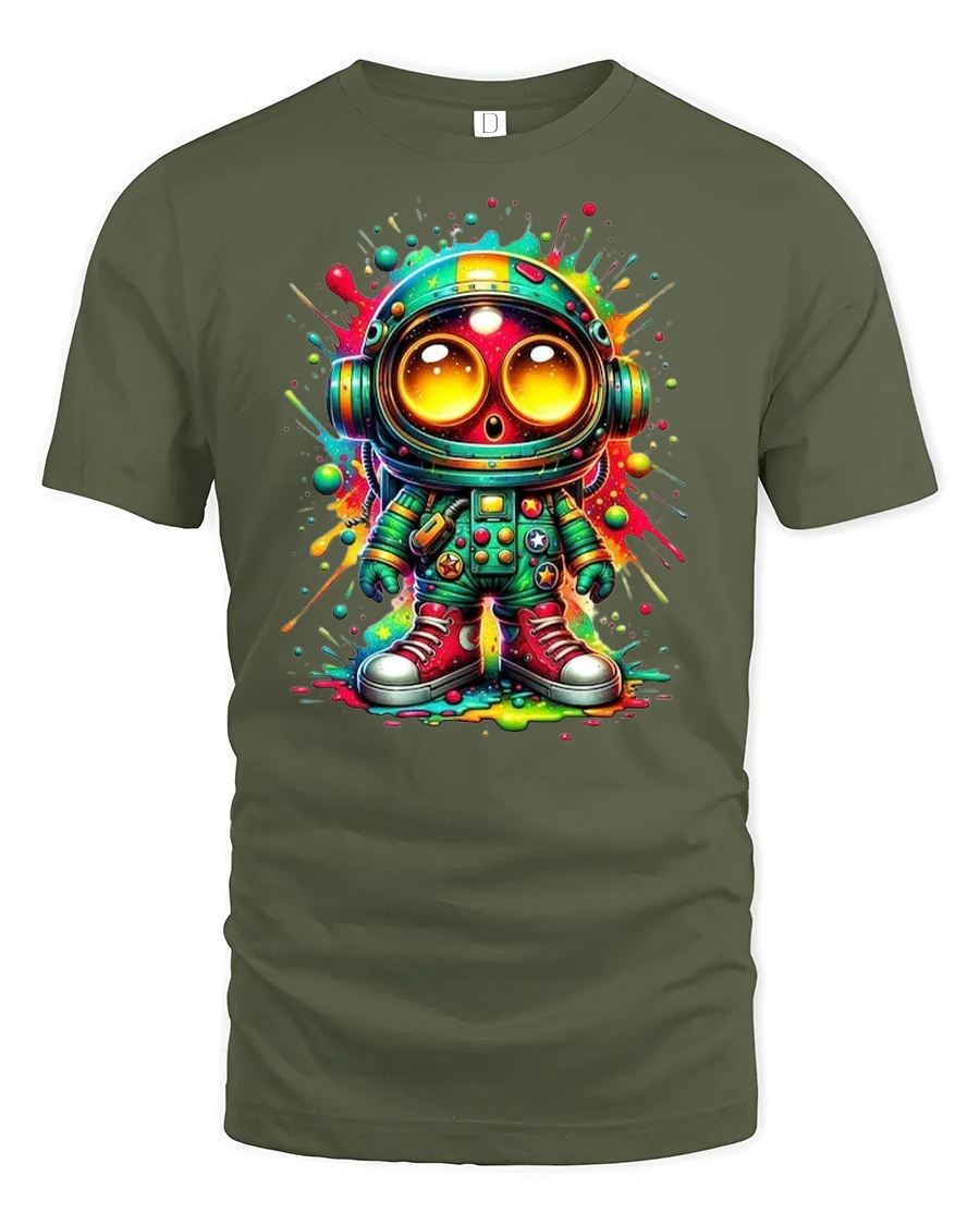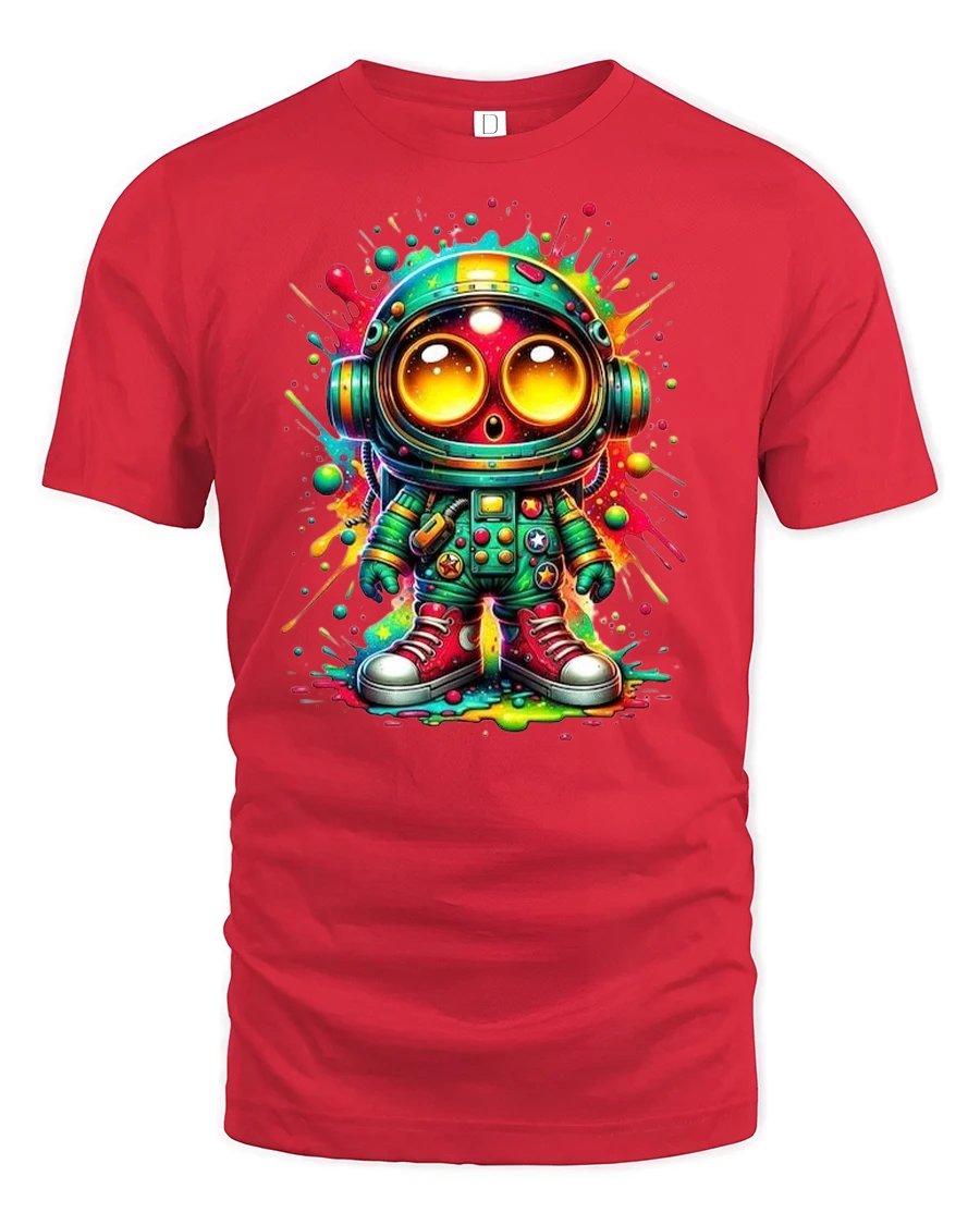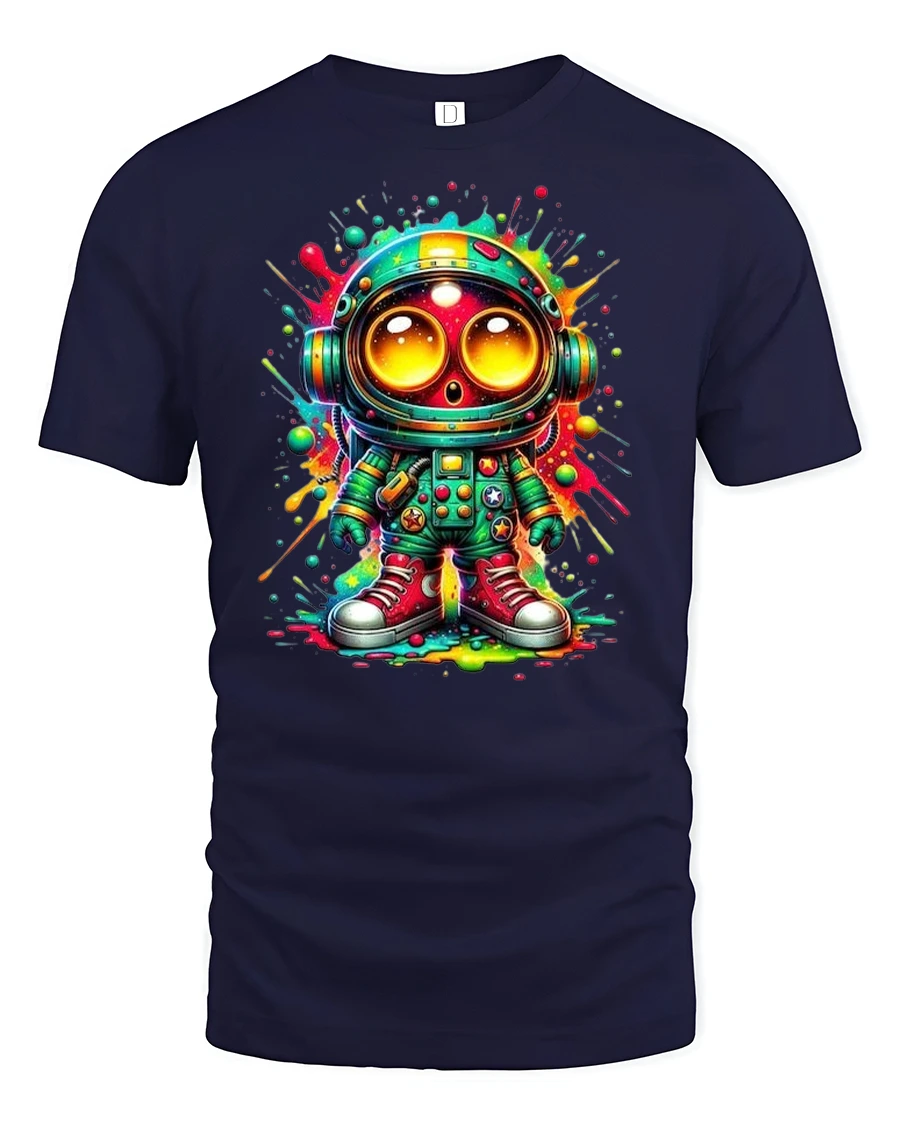 Blast off in style with the Neon Astronaut Graphic Tee Cosmic Streetwear Style. This bold and vibrant design features a cartoon astronaut with oversized eyes, set against a colorful splash background. It’s a perfect blend of streetwear attitude and cosmic wonder, making it an instant favorite for space enthusiasts and graphic tee collectors.