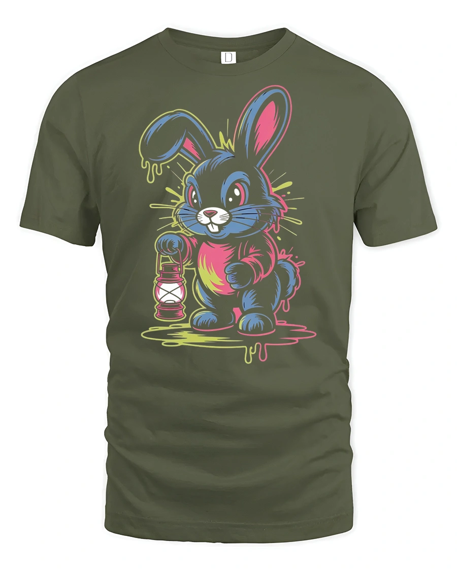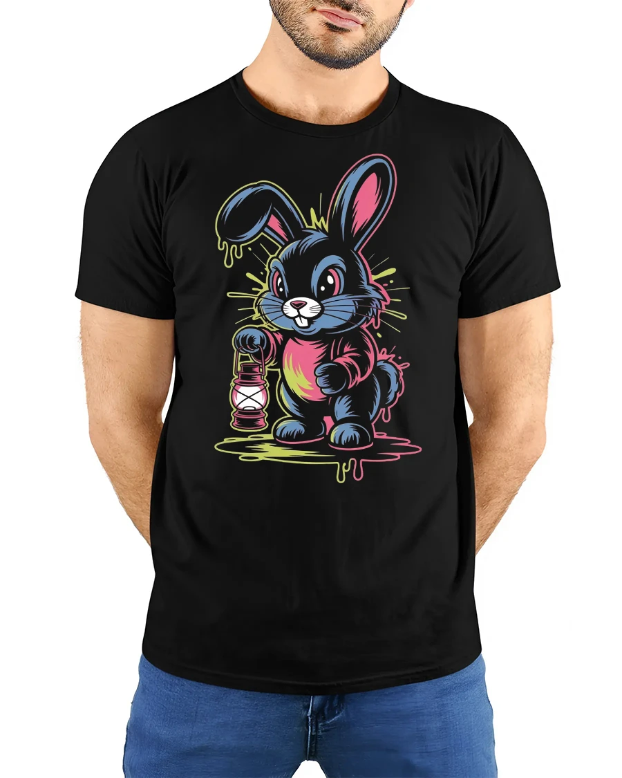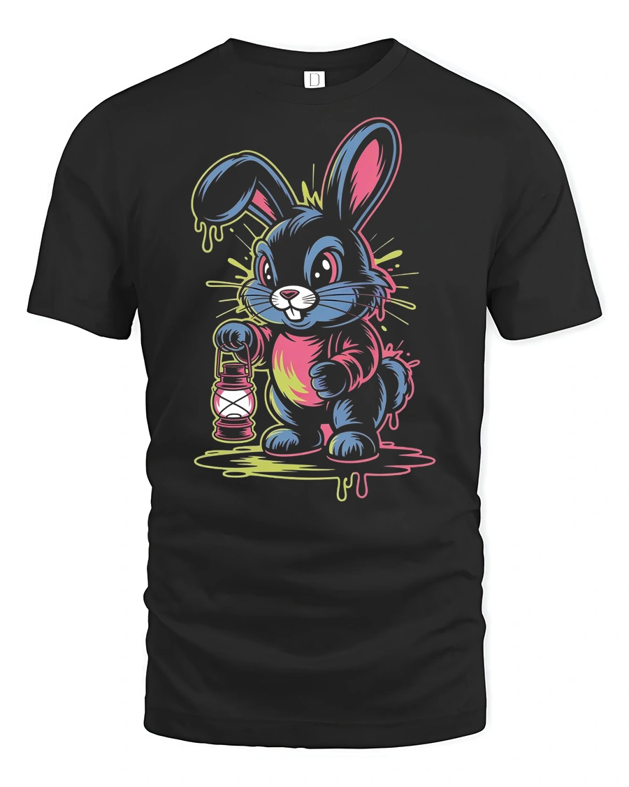 Featuring a bright, colorful bunny holding a lantern, this tee captures the perfect mix of cute and edgy streetwear style.