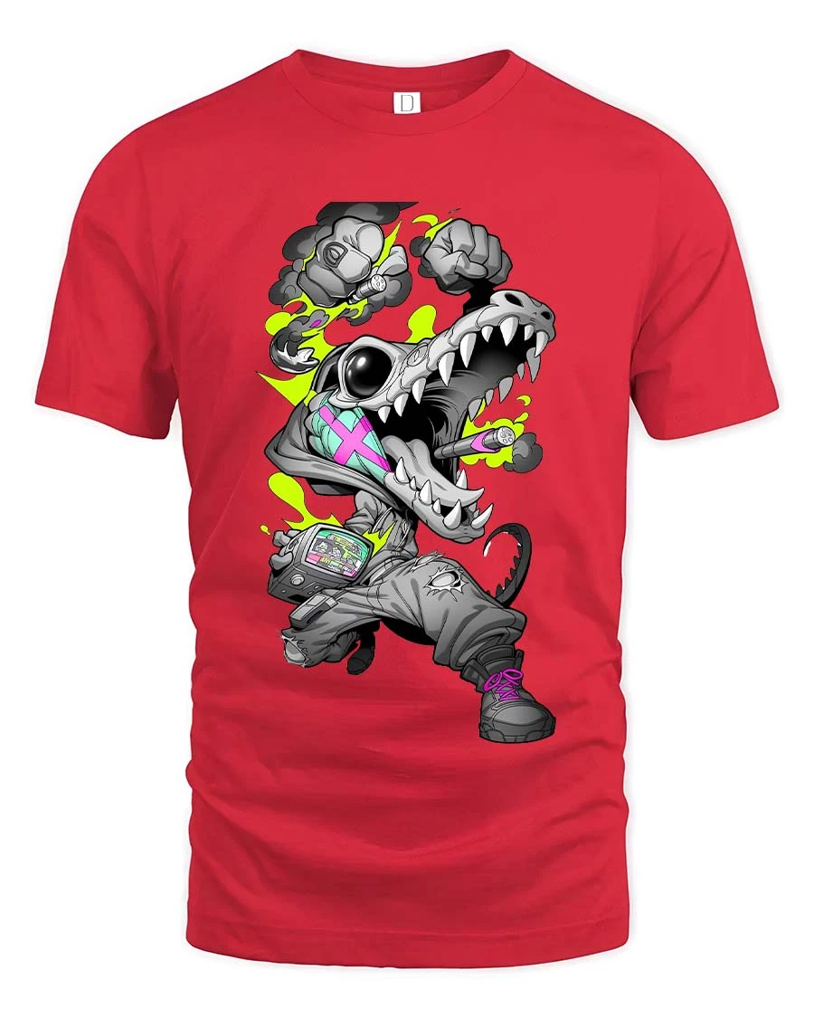 Neon Crocodile Streetwear Graffiti Graphic T Shirt Style - red t-shirt on white background