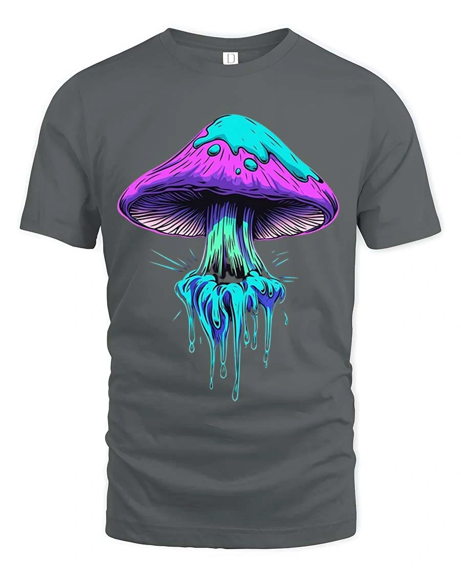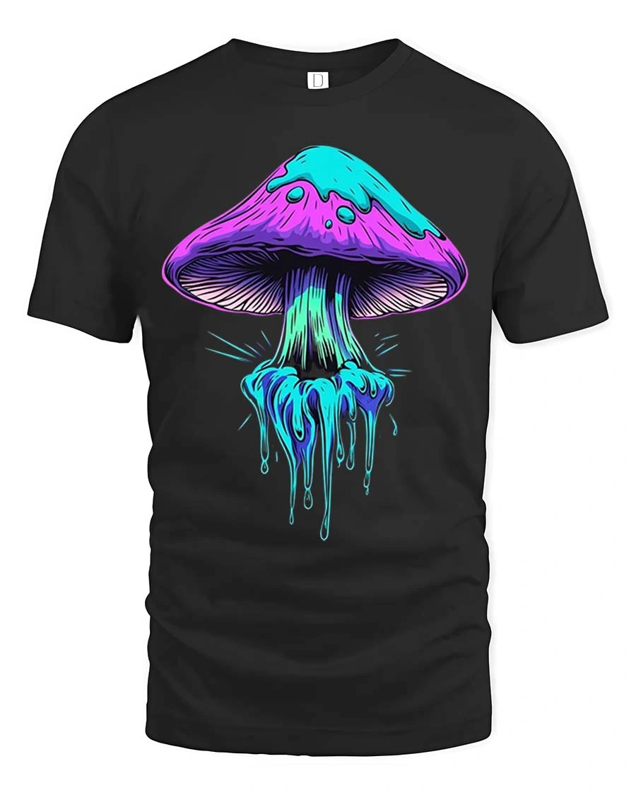 Neon Dripping Mushroom Psychedelic Art Graphic T Shirt brings a bold and vibrant visual inspired by trippy aesthetics.