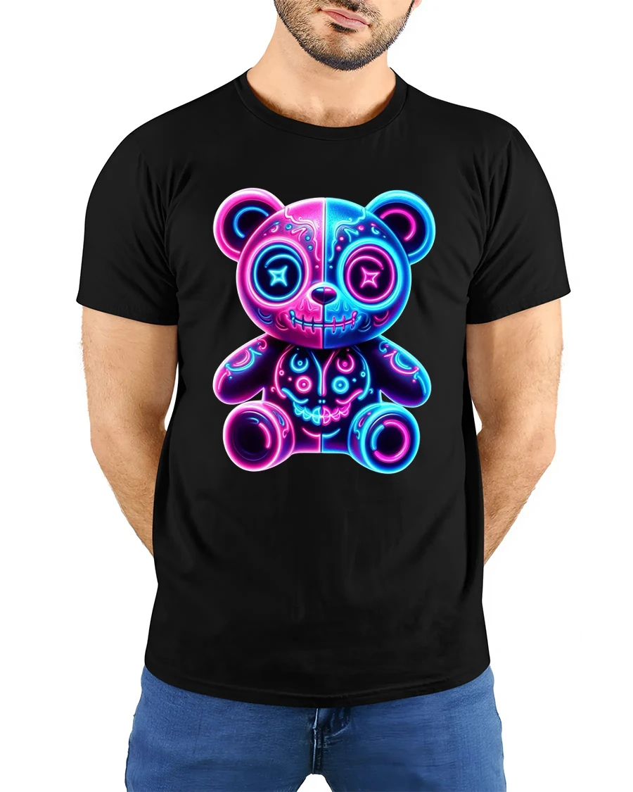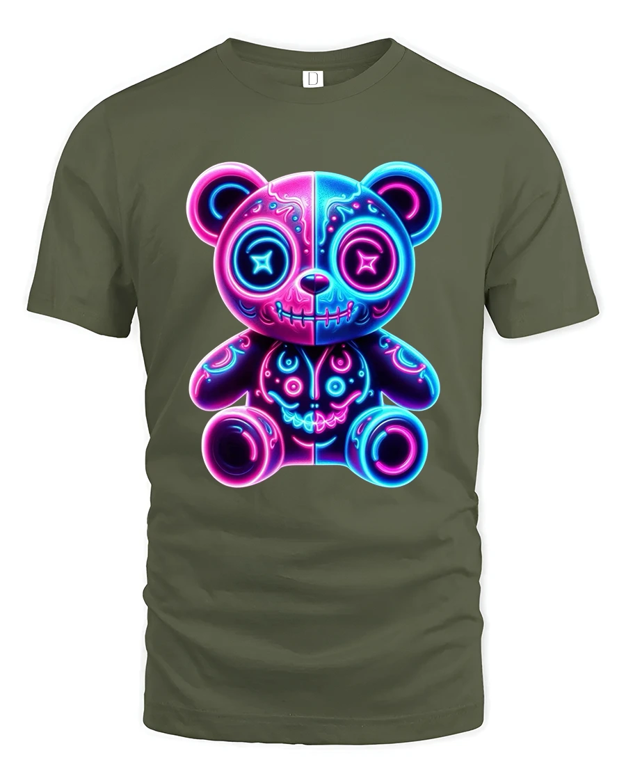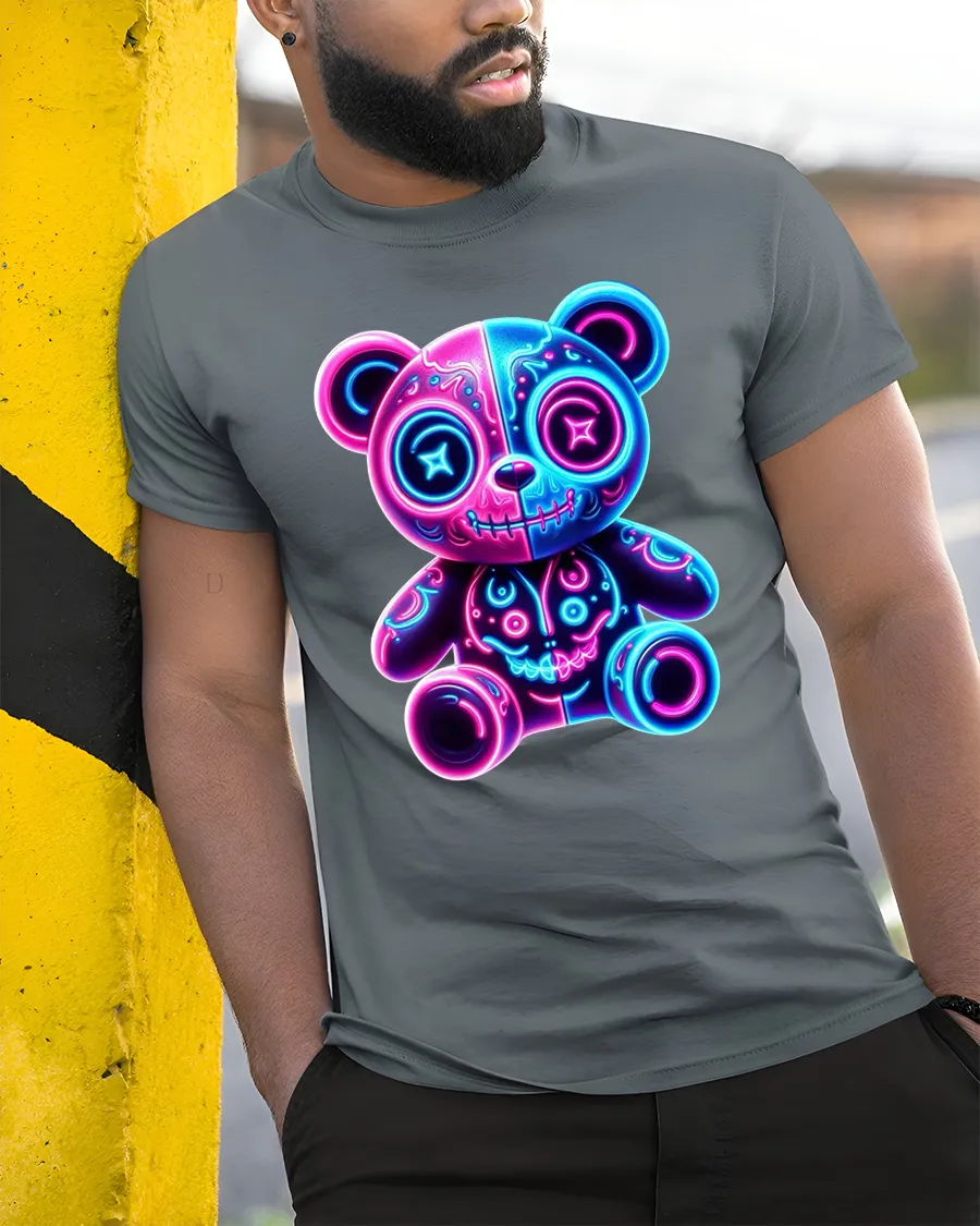 Neon Glow Teddy Bear Cute Dark Art Electric Vibes Tee blends adorable charm with bold neon energy in a striking visual design.