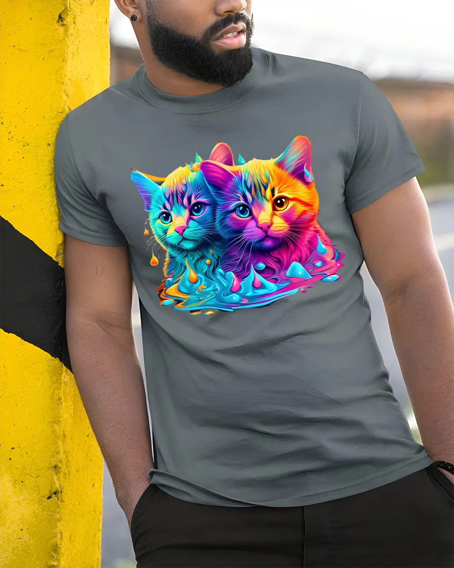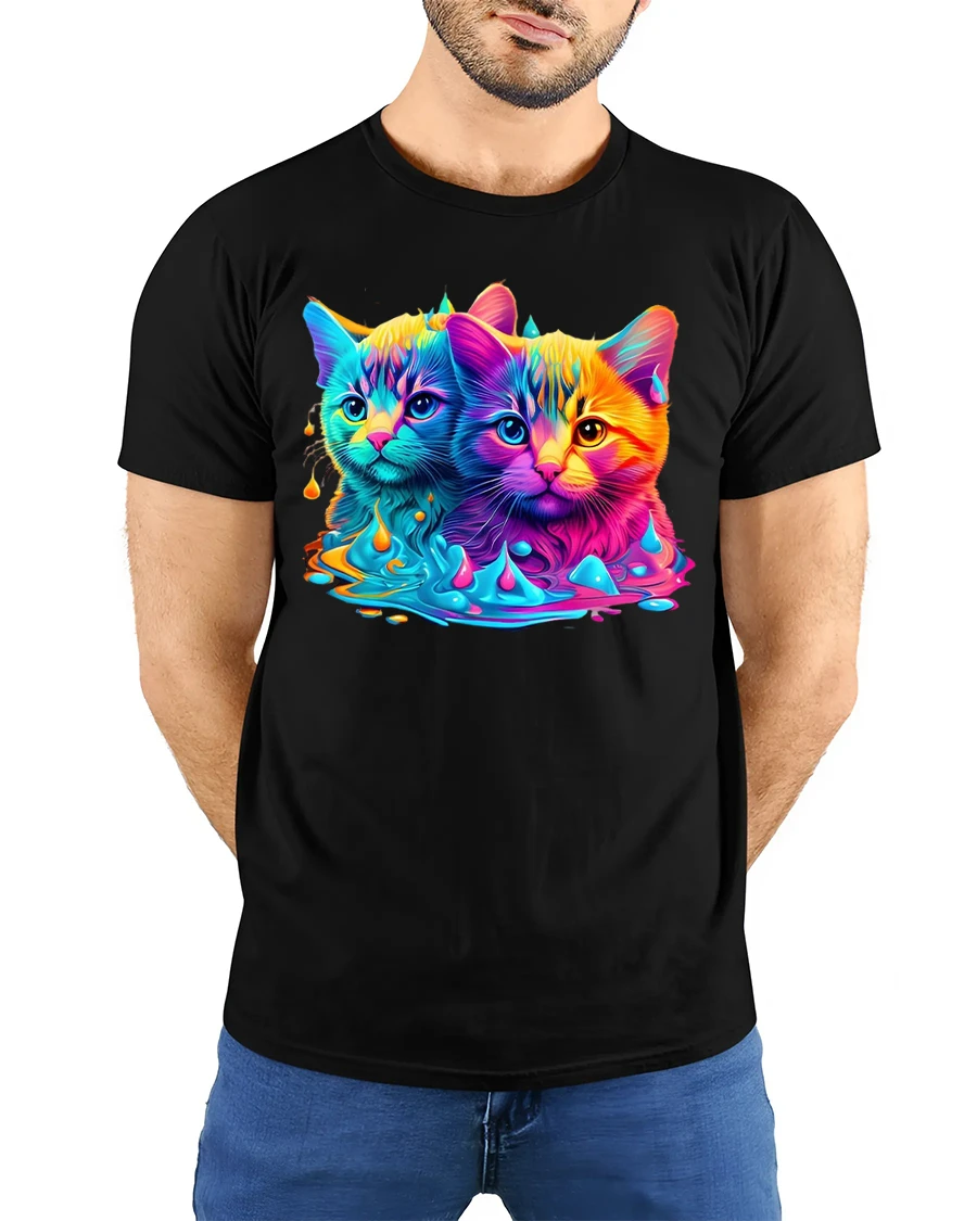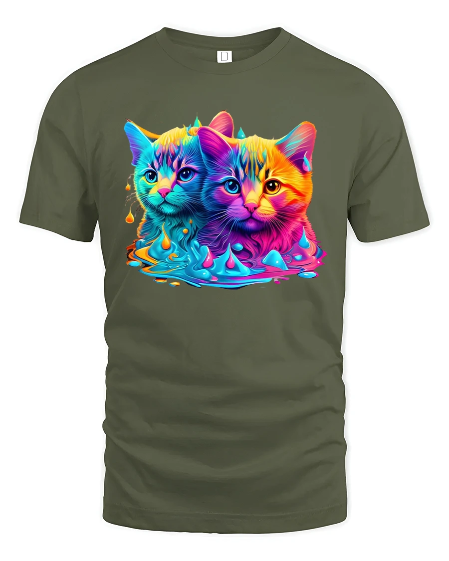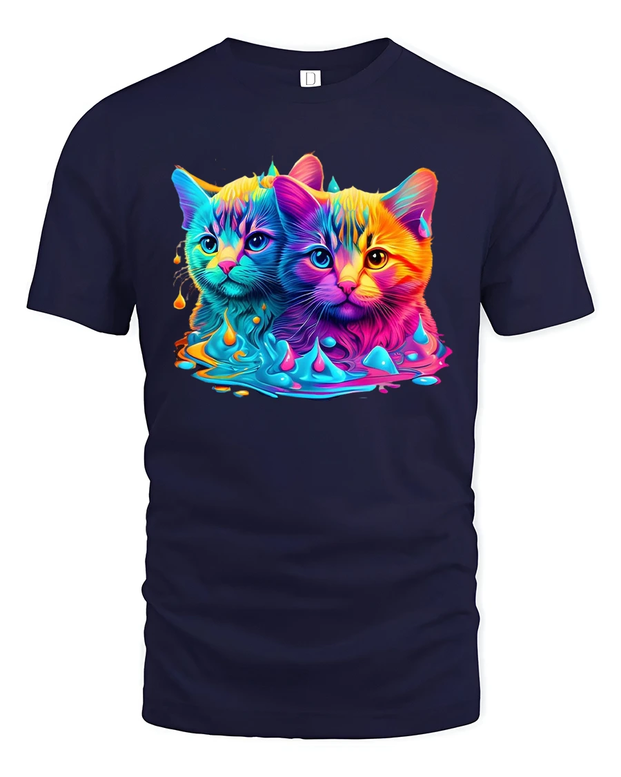 The Neon Twin Cats Color Splash Graphic Tee Unisex is a vibrant celebration of feline energy and artistic creativity. Featuring two colorful cats surrounded by liquid splashes of neon hues, this tee is a true statement piece for cat lovers and fans of unique, eye-catching designs. Perfect for anyone who loves fun, expressive fashion with a touch of modern art flair.