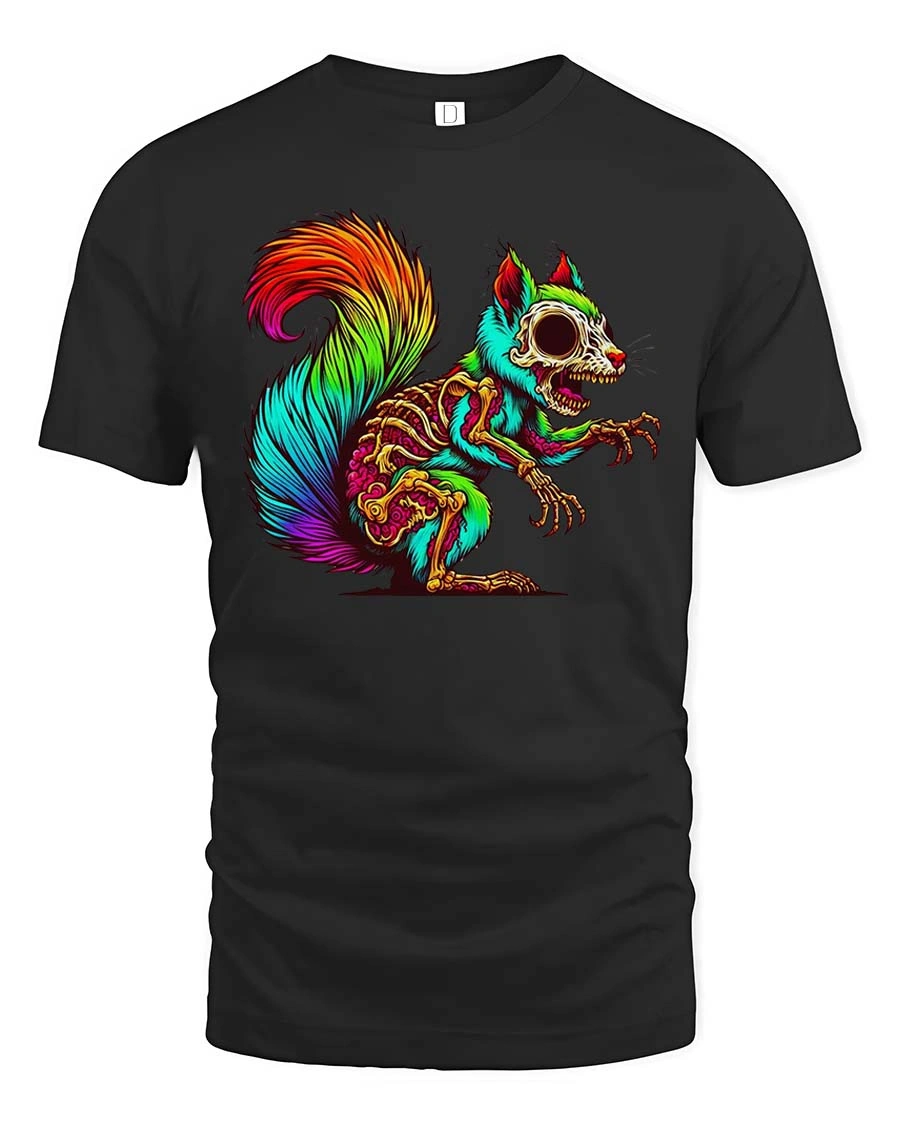 Neon Zombie Squirrel T Shirt Psychedelic Horror Animal Graphic Tee delivers a bold and electrifying design with a wild twist.