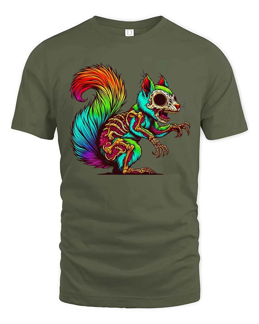 Neon Zombie Squirrel T Shirt Psychedelic Horror Animal Graphic Tee - military green t-shirt on white background