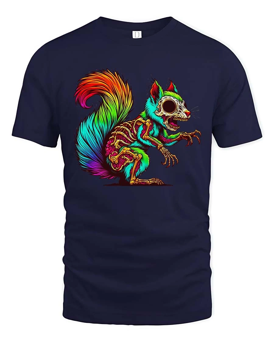 Neon Zombie Squirrel T Shirt Psychedelic Horror Animal Graphic Tee - navy t-shirt on white background
