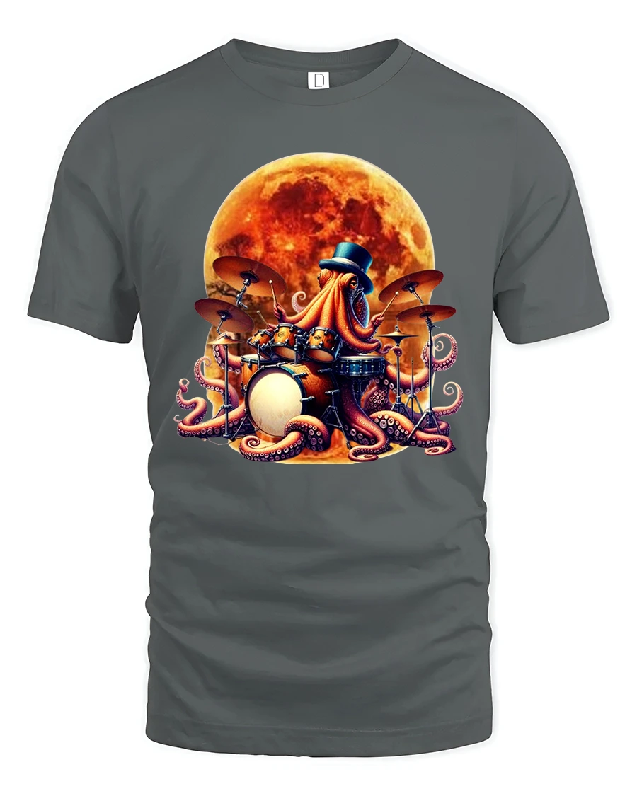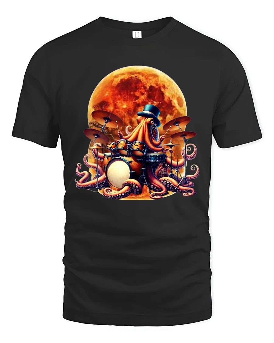 This Octopus Drummer Tee Cool Moonlit Tentacle Drum Art Tshirt is designed for music lovers who enjoy bold, creative, and imaginative artwork. Featuring a brilliantly illustrated octopus wearing a top hat and rocking a full drum set, the design blends musical energy with vibrant ocean-themed fantasy.