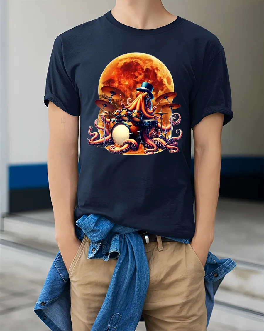 Crafted for comfort and style, this tshirt offers soft, breathable fabric perfect for concerts, casual outings, rehearsals, or gifting to the drummer in your life. The high-quality print captures every detail—from swirling tentacles to shining cymbals—ensuring the artwork stays vivid and eye-catching over time.