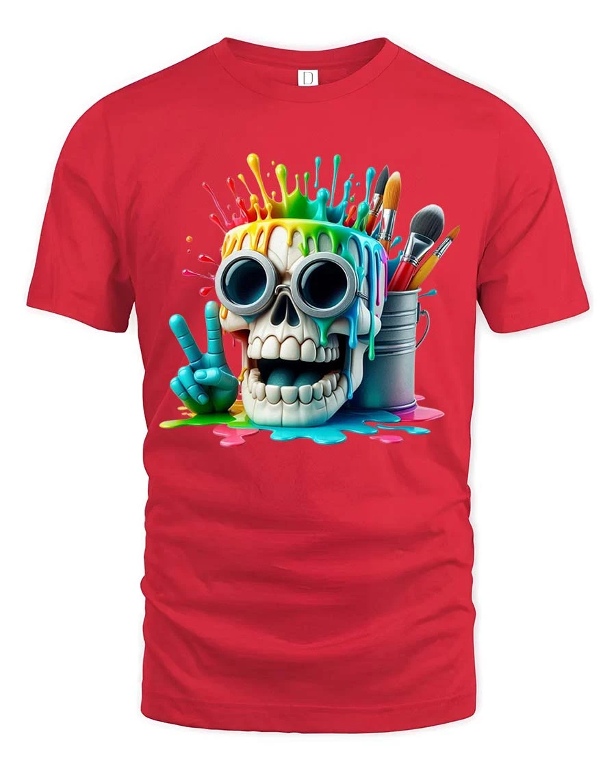 Paint Splash Skull T Shirt Funny Artist Graphic Colorful Tee - red t-shirt on white background