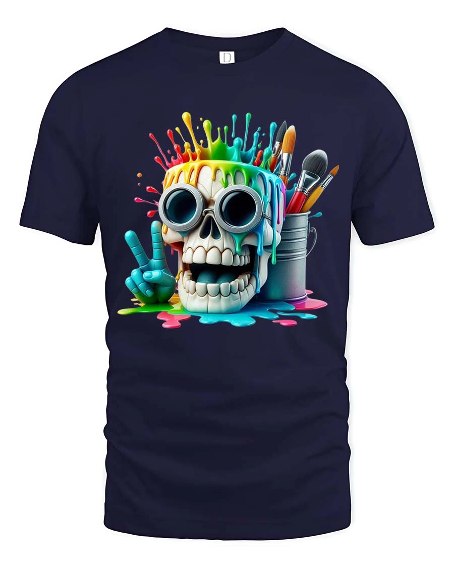 Paint Splash Skull T Shirt Funny Artist Graphic Colorful Tee - navy t-shirt on white background