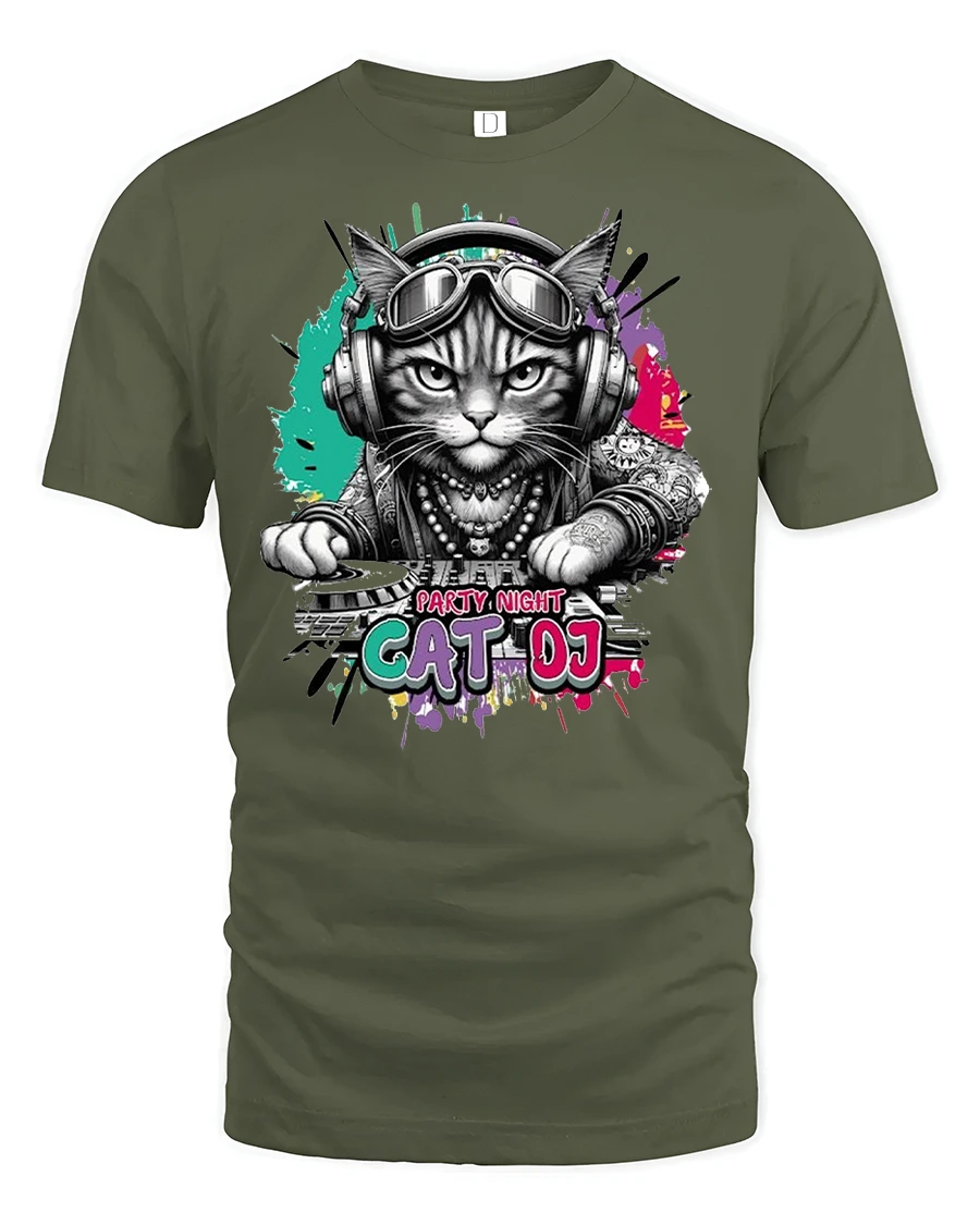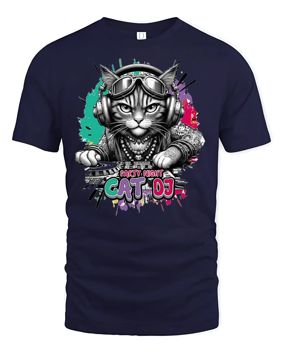 Turn up your style and let your outfit drop the beat with the Party Night Cat DJ Funny Music Lover Graphic T-Shirt — the perfect combo of cool design, comfort, and personality.