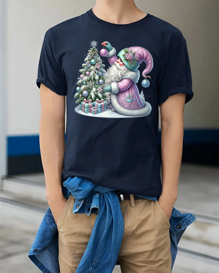 Wearing the Pastel Christmas Santa Decorating Tree Winter Magic Graphic Tee adds cheerful seasonal spirit to everyday outfits. The intricate detailing and soft glow of the design create a comforting and uplifting look that suits holiday gatherings, winter outings, or simply embracing the joyful energy of the season. This tshirt is perfect for anyone who enjoys charming Christmas art and wants to express their love of festive aesthetics in a stylish and playful way.