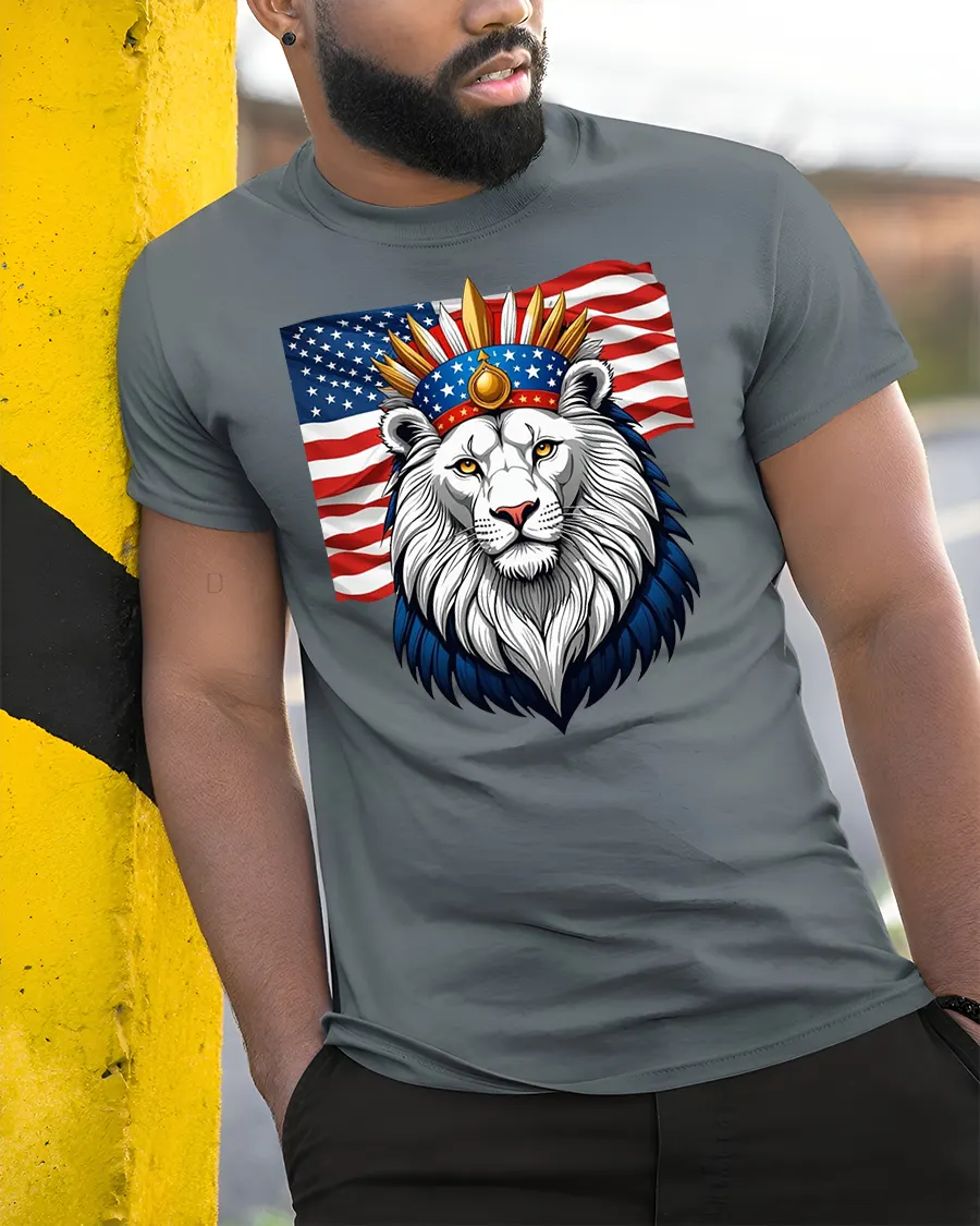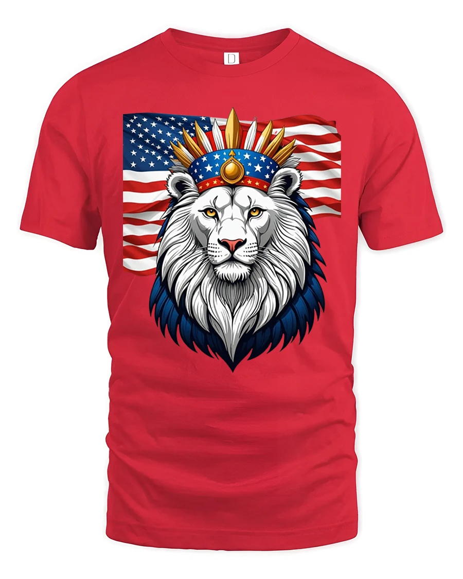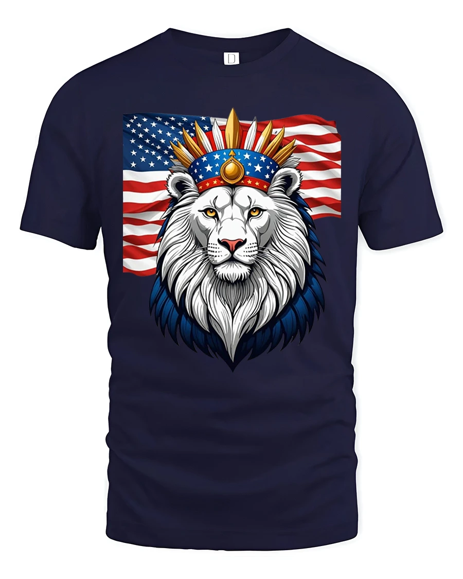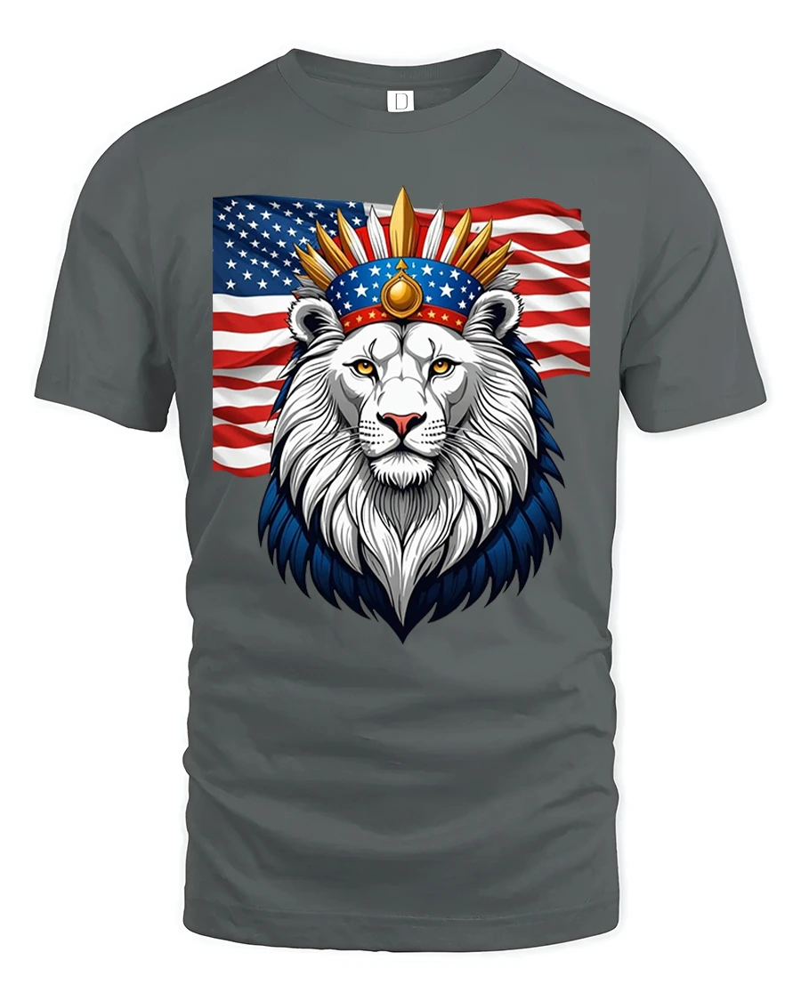 Patriotic Lion Crown American Flag Power Graphic Tshirt Art represents strength confidence and national pride through a bold symbolic design.