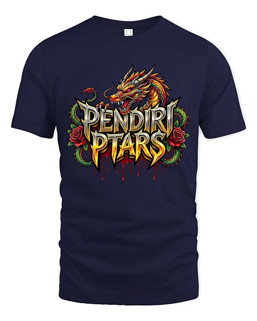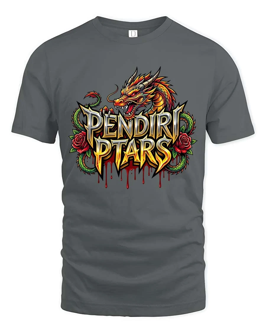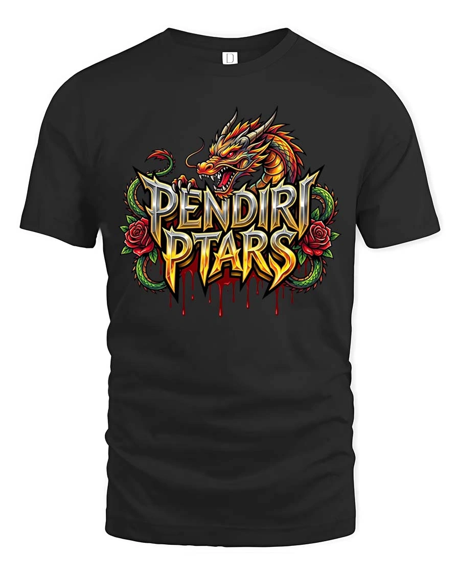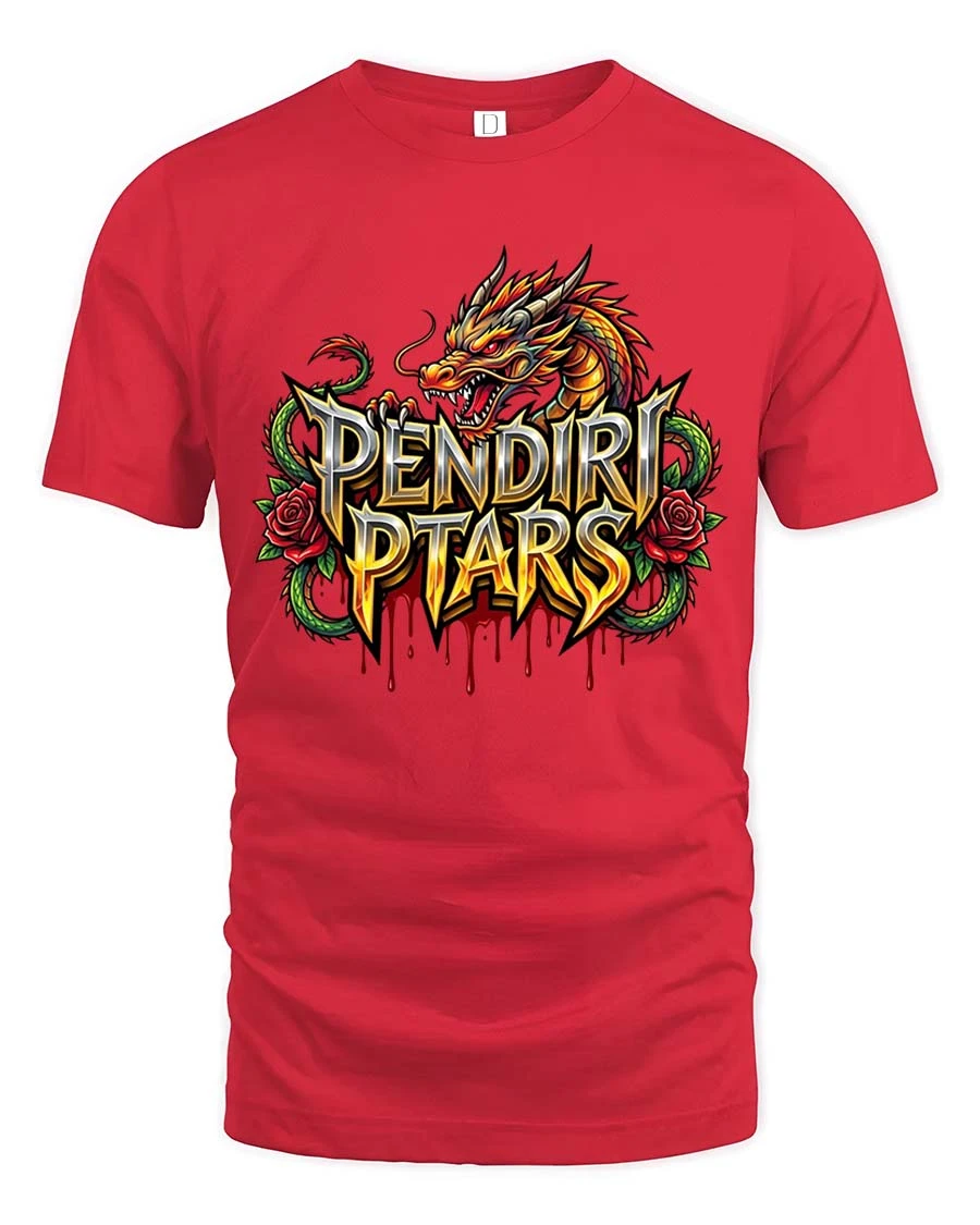 Unleash bold energy with this Pendir Ptars dragon fire graphic t shirt featuring a fierce mythical creature surrounded by flames and striking details.