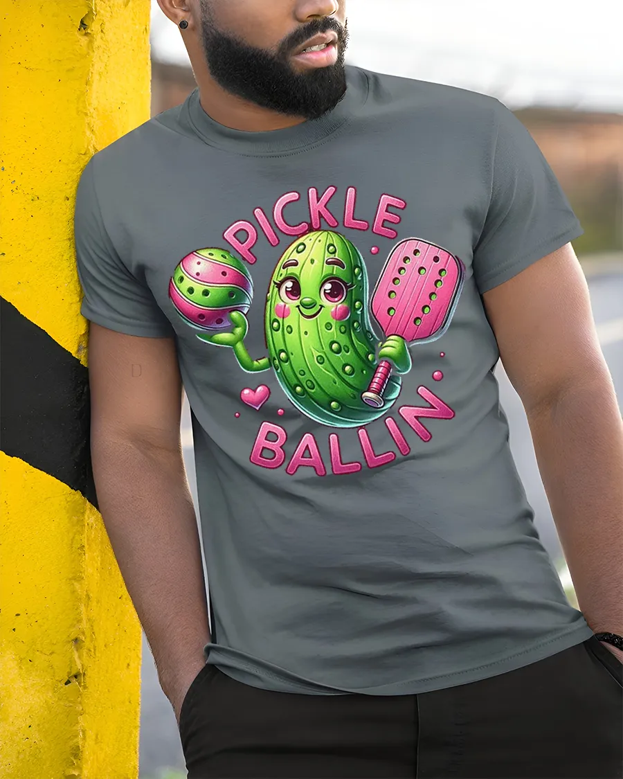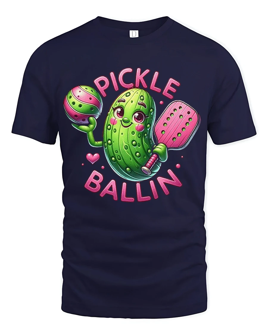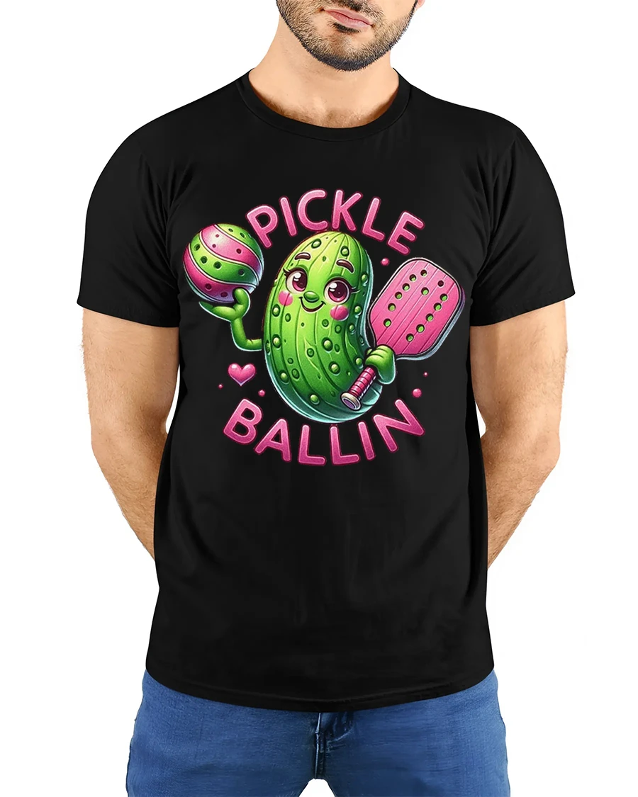 Pickle Ballin Funny Pickleball Cartoon Graphic T Shirt brings humor energy and charm into one eye catching design.