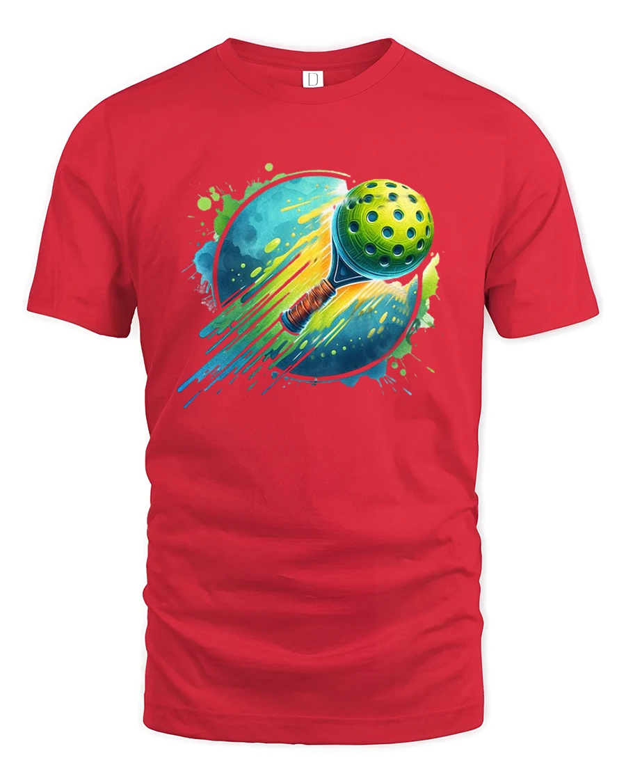 Pickleball T-Shirt Splash Art Funny Sports Graphic Tee - red t-shirt on white background