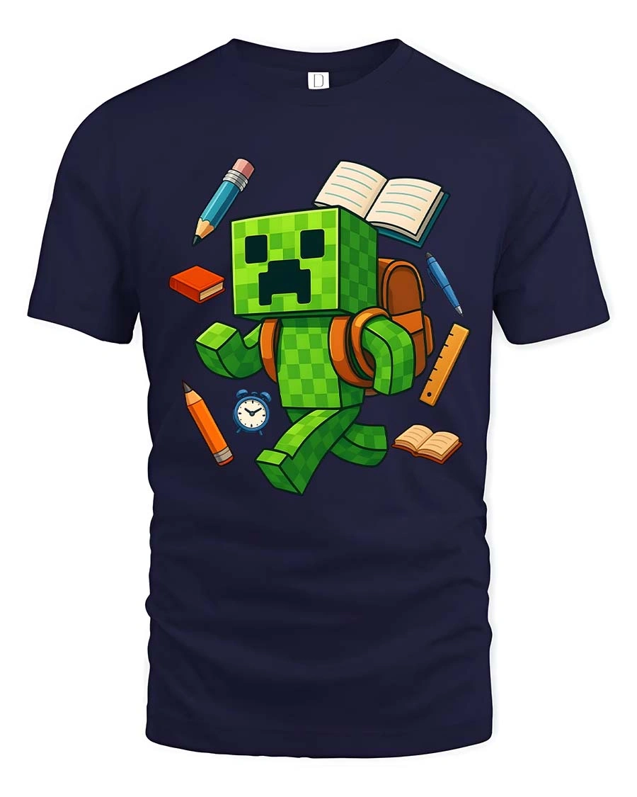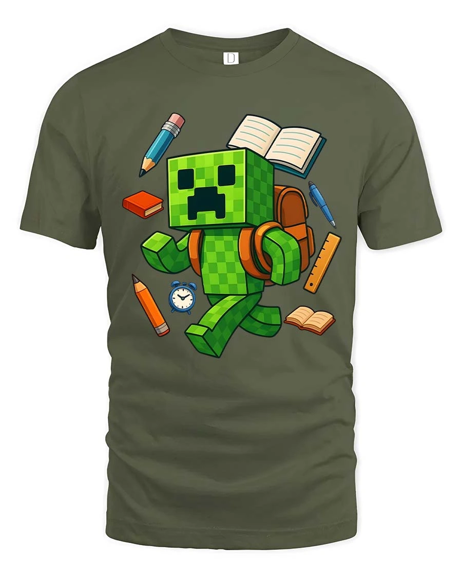 Pixel Monster Student School Supplies Cartoon Graphic T Shirt Tee combines playful gaming style with a fun school inspired theme.
