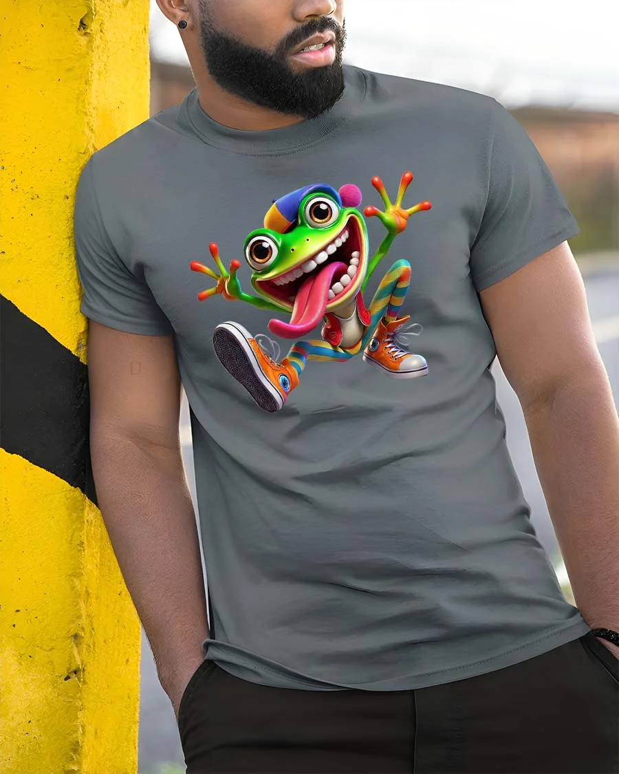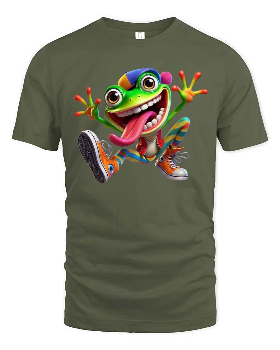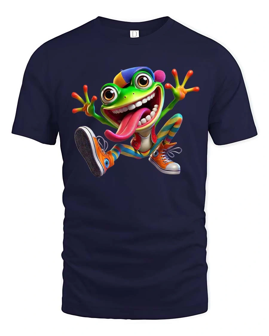 With its huge grin, bright colors, and silly tongue out expression, the frog character creates a fun and humorous design that instantly grabs attention.