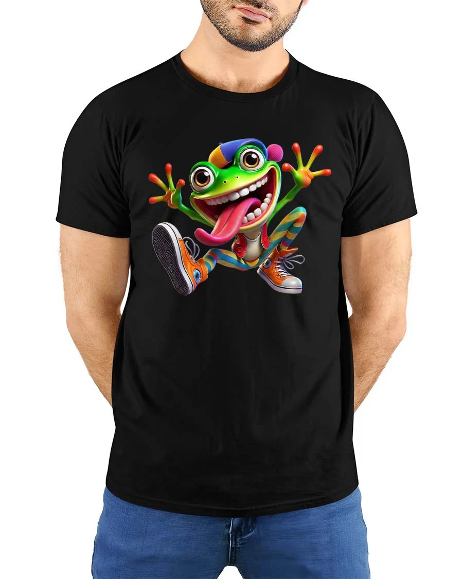 The Playful Crazy Frog Cartoon Humor Graphic T Shirt features a lively cartoon frog bursting with personality and playful energy.