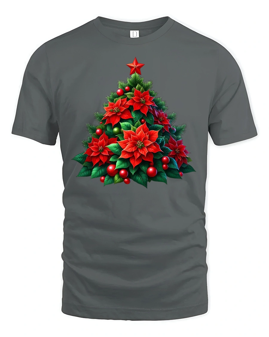 This Poinsettia Christmas Tree Tee brings a beautiful blend of elegance and festive charm, making it the perfect choice for holiday celebrations.