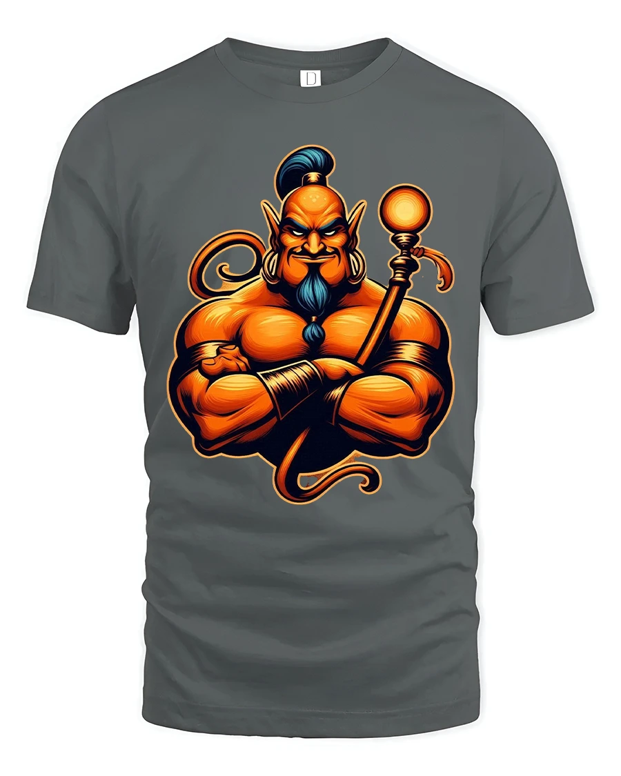 Powerful Mystic Genie Warrior Fantasy Illustration Graphic T Shirt features a bold magical character with intense strength and commanding presence.