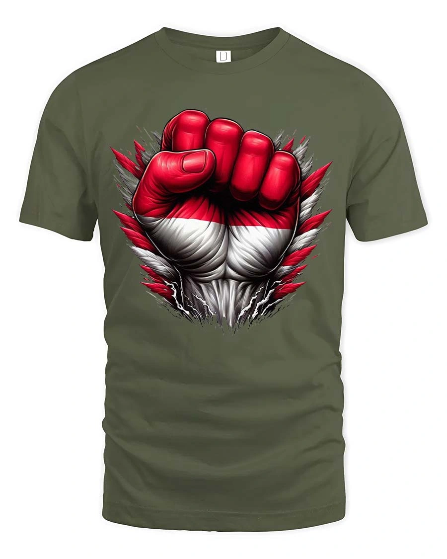 Powerful Red White Fist T Shirt Bold Strength Statement Graphic - military green t-shirt on white background