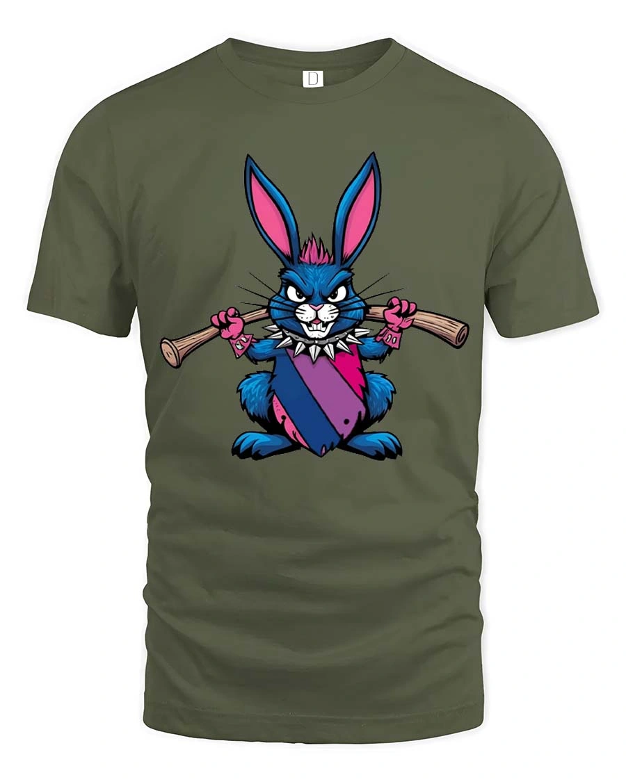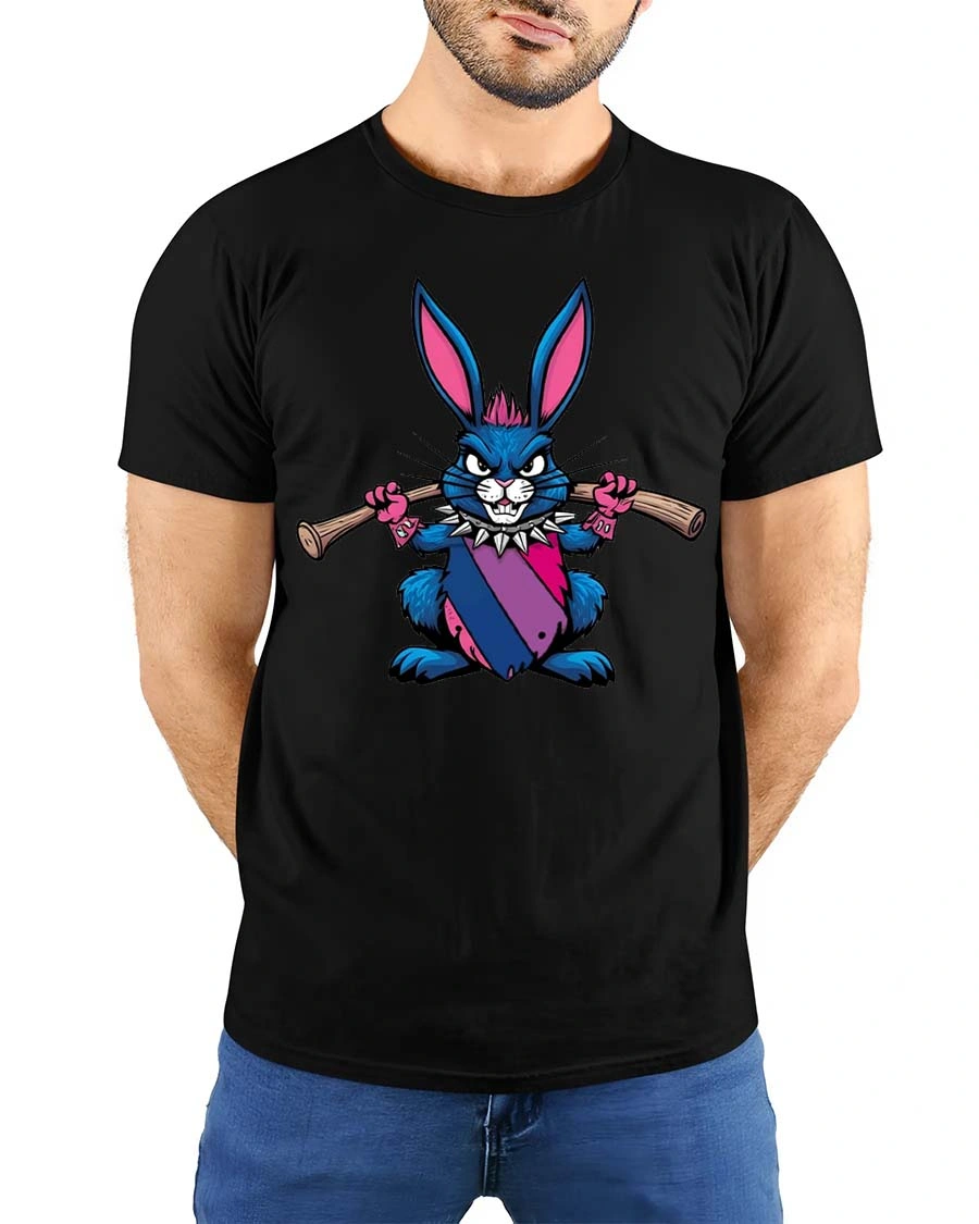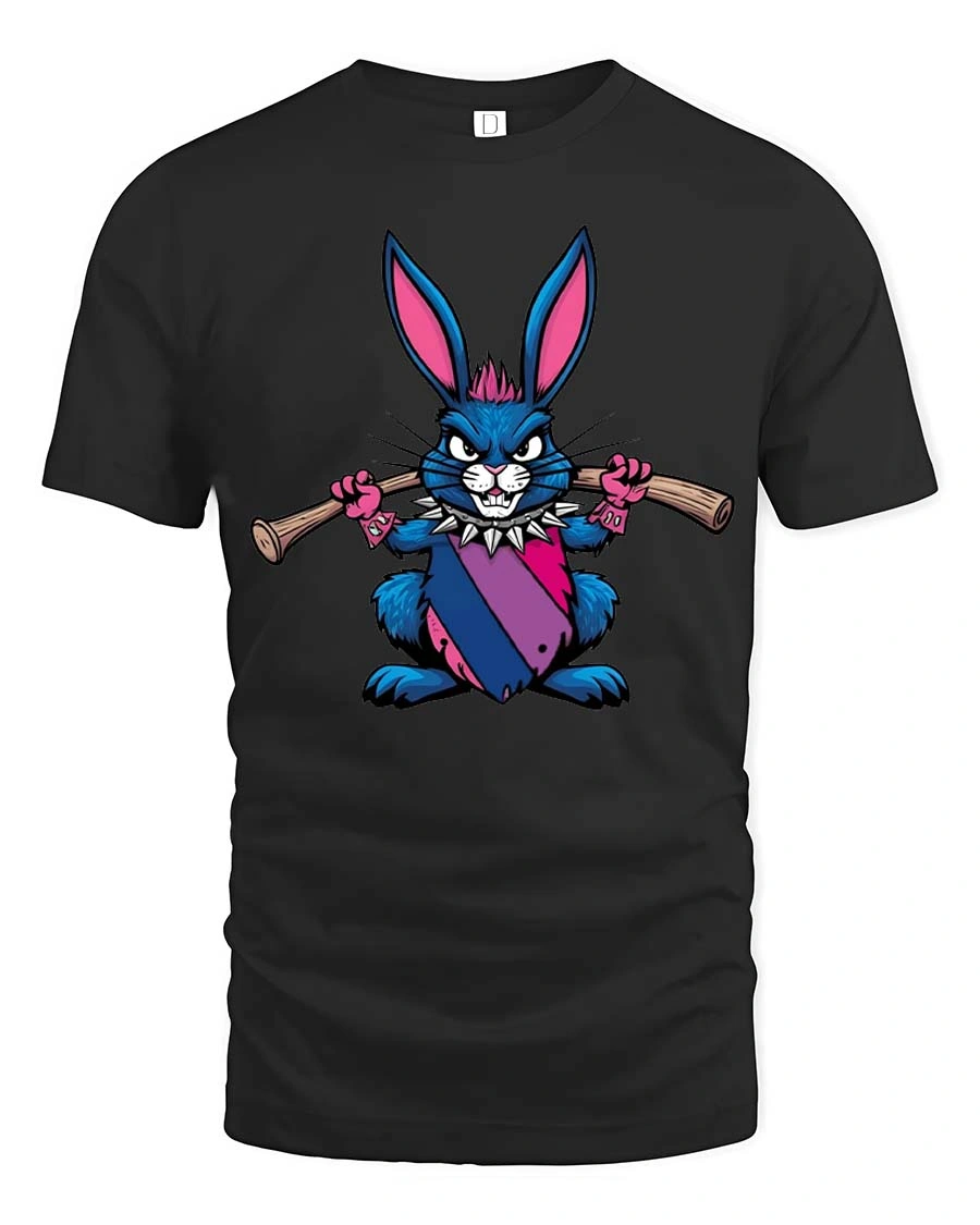 Punk Rebel Bunny Graphic T-Shirt Cute Attitude Street Tee delivers a bold and playful design with a rebellious twist.