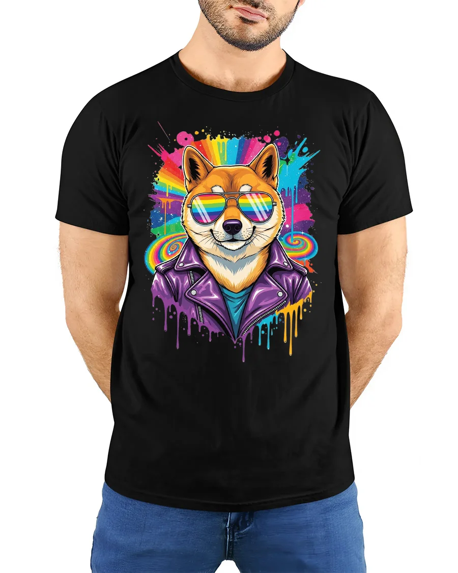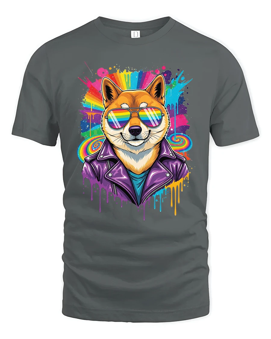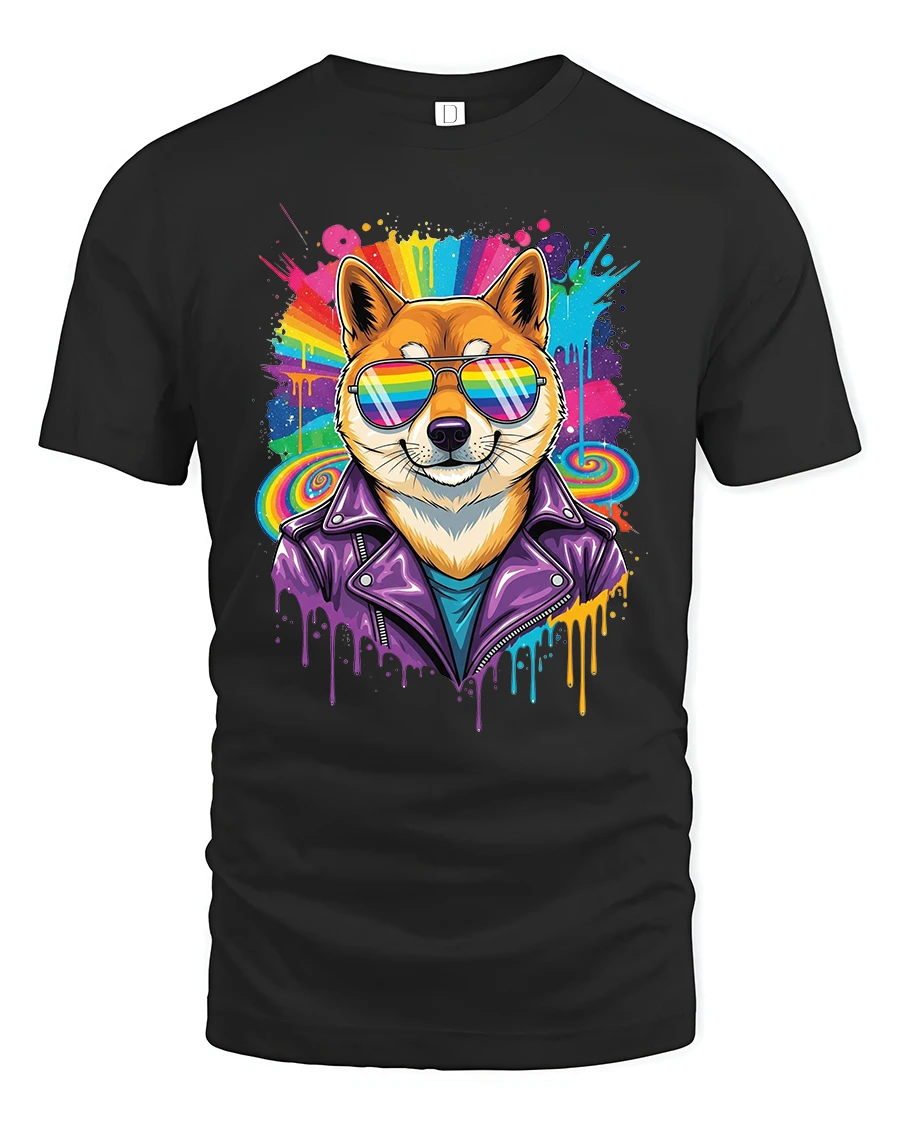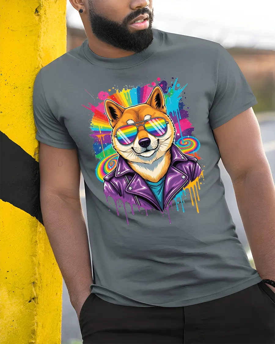 This rainbow dog graphic tee is a great choice for anyone who loves expressive art and fun designs.