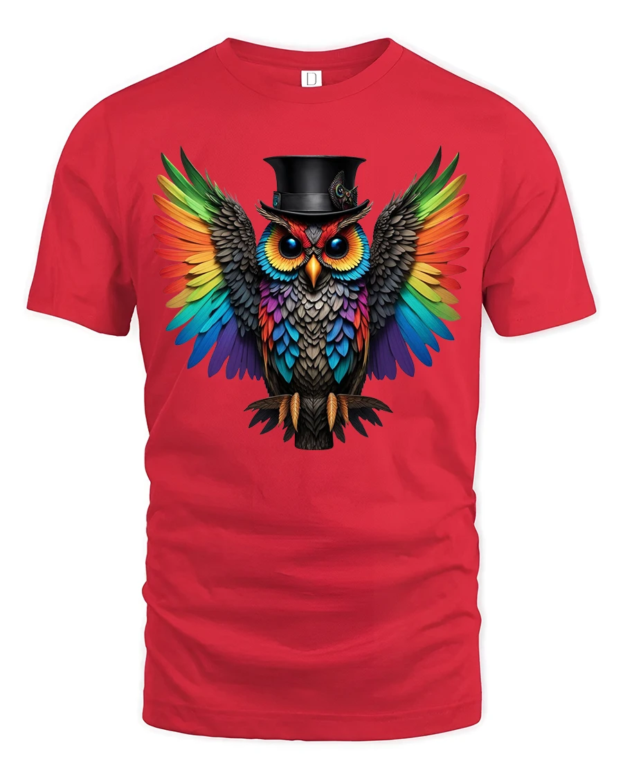 Rainbow Owl Tee With Bold Colorful Wings And Cool Style delivers a striking visual that instantly grabs attention.