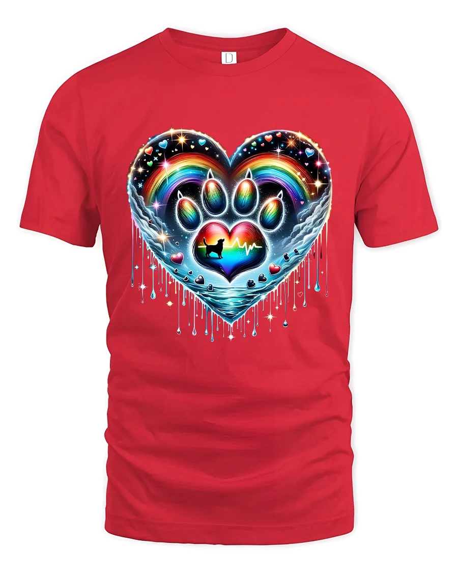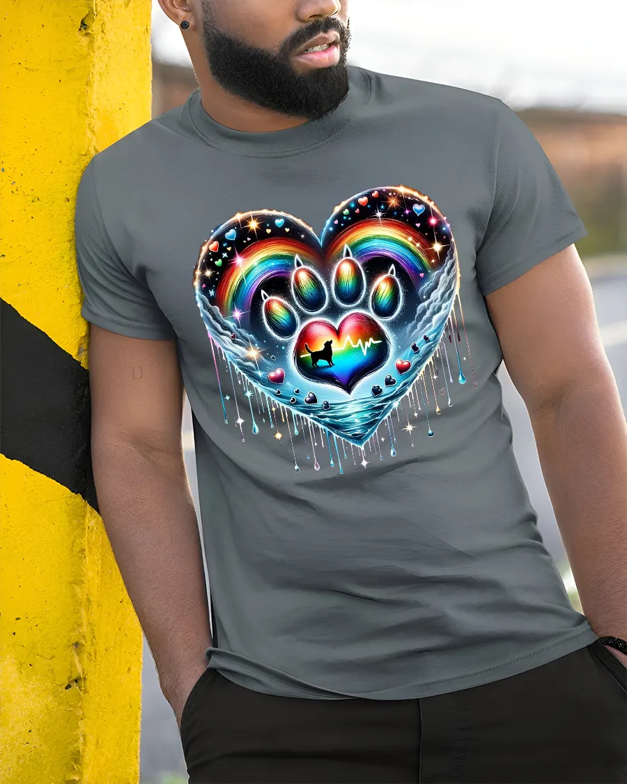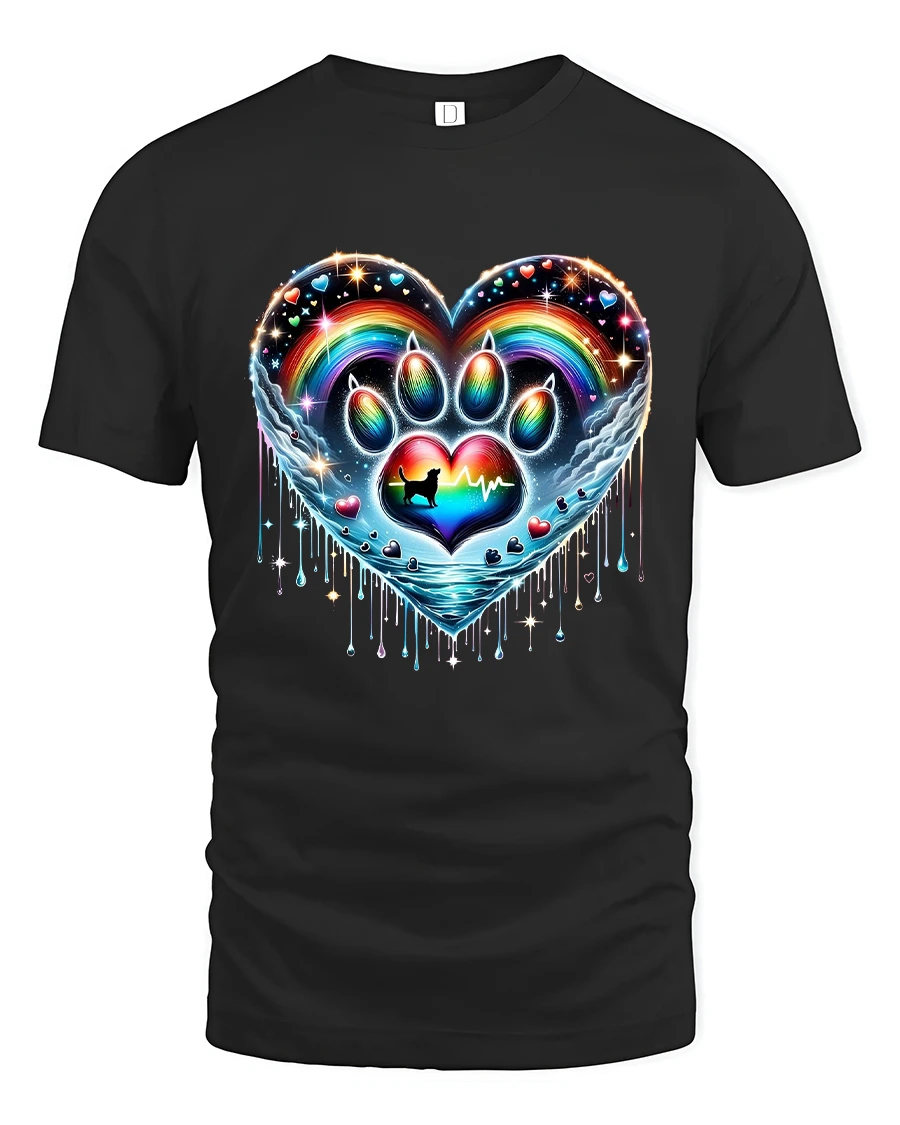 Rainbow Paw Heart Tshirt Colorful Pet Love Artistic Graphic is designed to stand out with vibrant color depth and artistic detail.