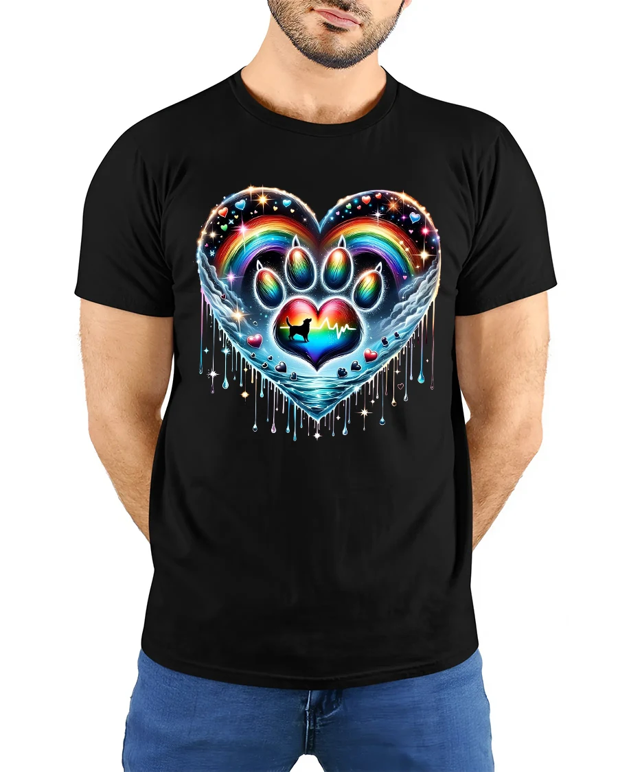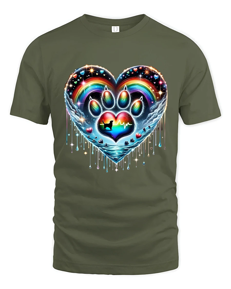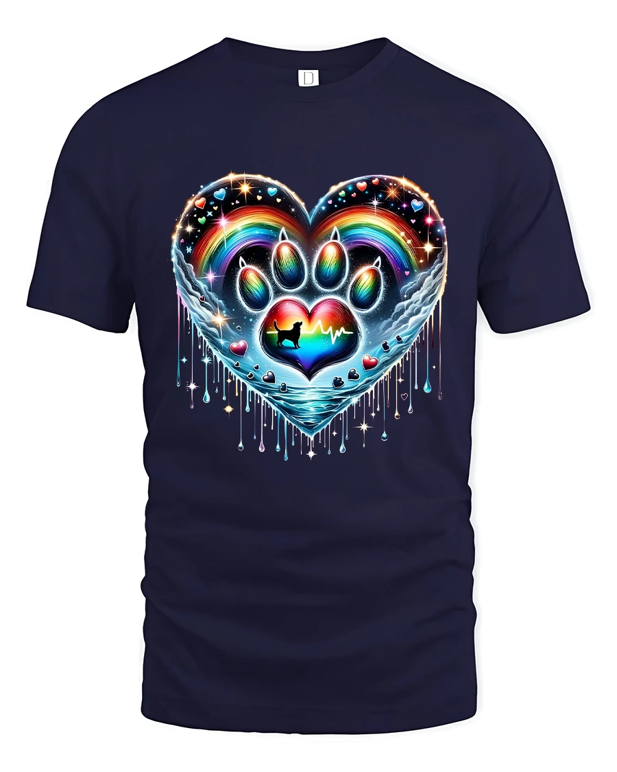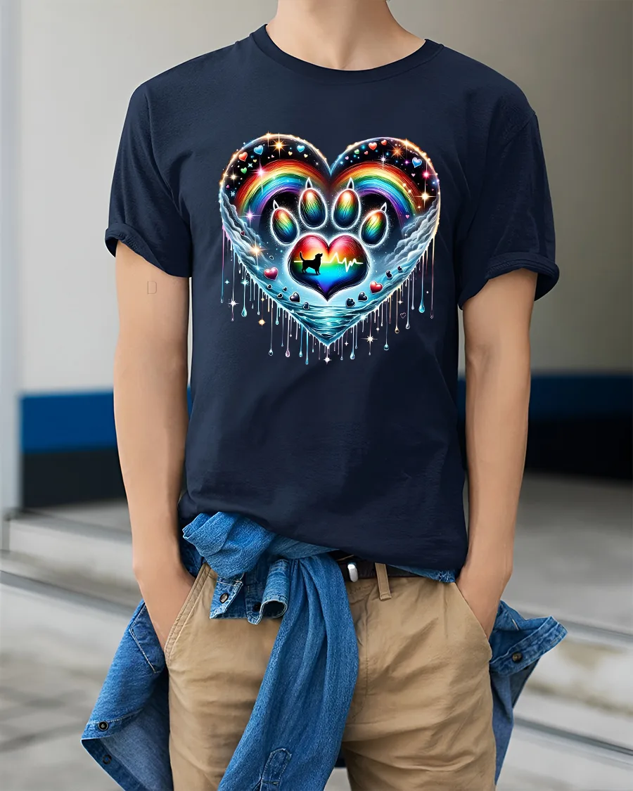 Rainbow Paw Heart Tshirt Colorful Pet Love Artistic Graphic is designed to stand out with vibrant color depth and artistic detail.