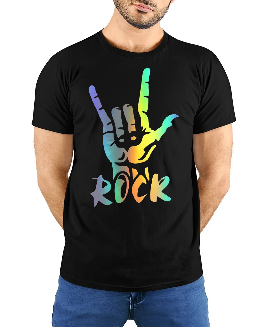This Rainbow Rock Hand Sign Graphic Tee Colorful Music Style Shirt is the perfect way to express your love for music, energy, and bold style. Featuring a vibrant rainbow-colored rock hand symbol paired with the word “ROCK,” this tee delivers a striking look that stands out at concerts, festivals, parties, and everyday casual wear. The artistic gradient effect gives the design a modern, electric vibe that appeals to music lovers of all ages.