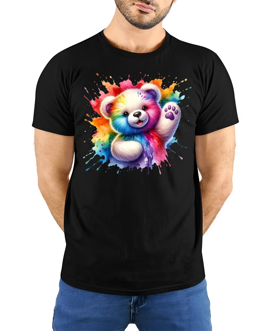 Rainbow Teddy Bear T-Shirt – Cute Color Splash Tee brings happiness, warmth, and a splash of color to your day.