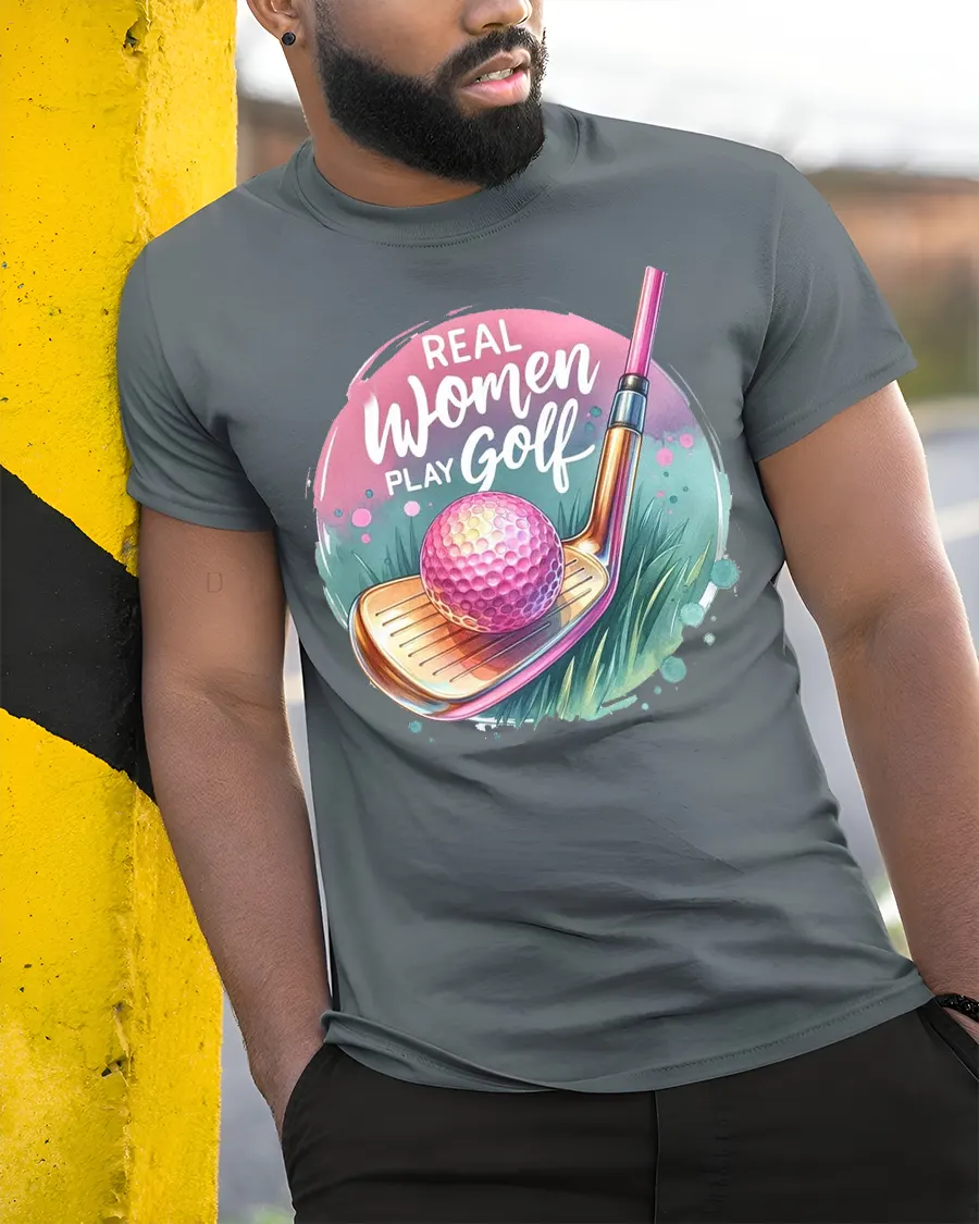 This Real Women Play Golf Graphic Tee is the perfect blend of personality, comfort, and style for every woman who’s proud to own the fairway.