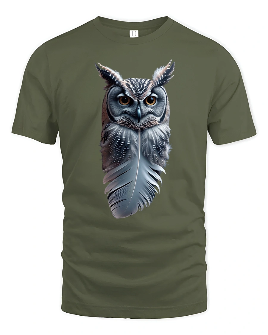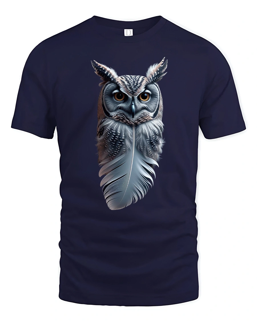 Featuring a majestic owl blending seamlessly into a detailed feather, this tee symbolizes wisdom, calm, and connection with nature.