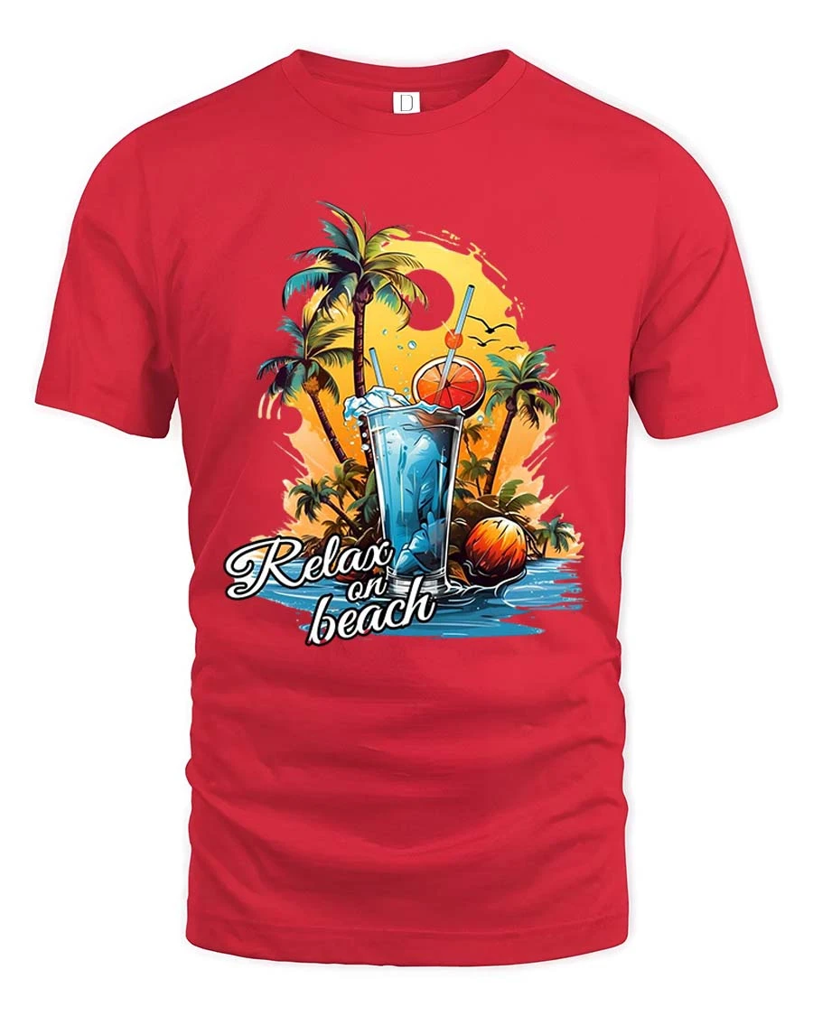 Relax on Beach Cocktail Vibes Summer Graphic T Shirt - red t-shirt on white background