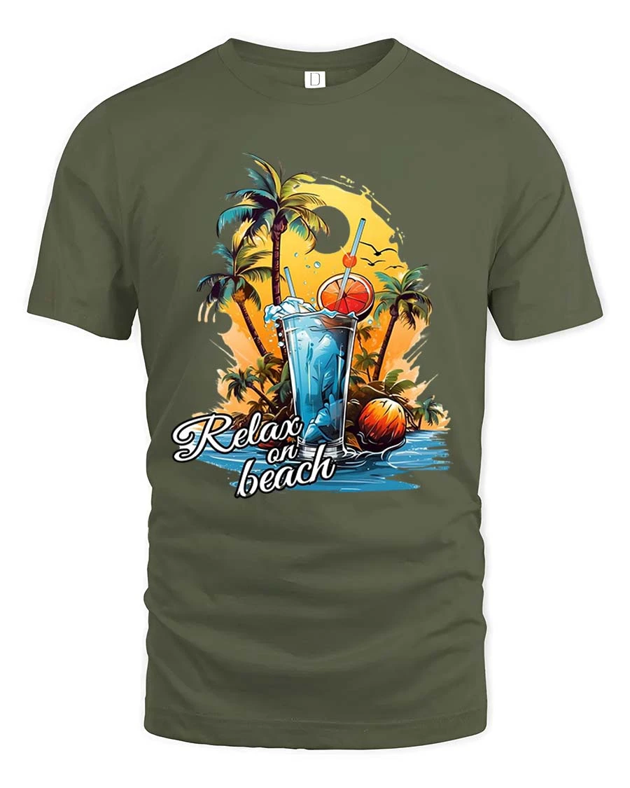 Relax on Beach Cocktail Vibes Summer Graphic T Shirt - military green t-shirt on white background