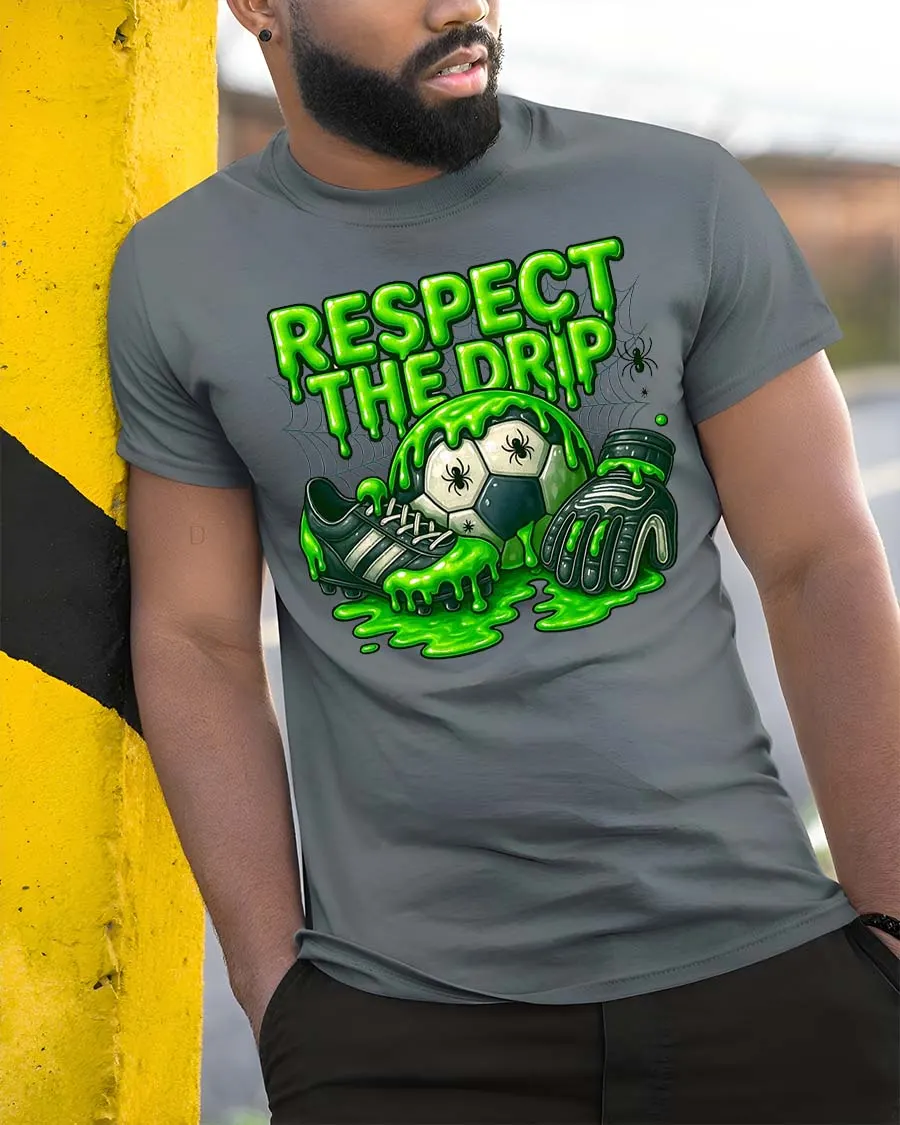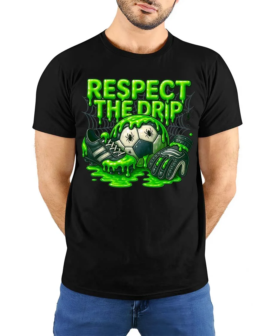 Respect The Drip Soccer T Shirt Funny Slime Goalkeeper Style delivers a bold and playful design that combines humor and sports energy in one eye catching look.