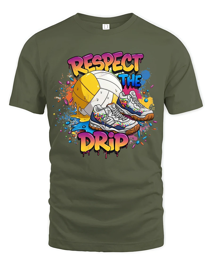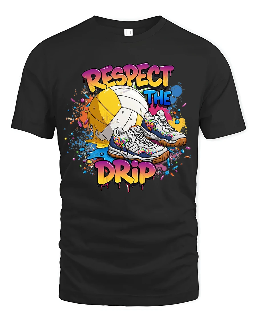 Respect The Drip Volleyball Sneaker Graphic Tee With Street Art Style delivers a bold fusion of sport culture and modern fashion.