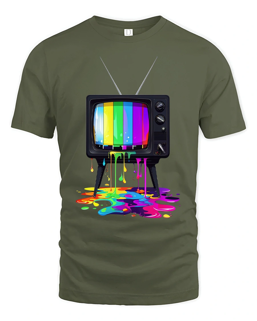 The Retro Color Melt Television Graphic T Shirt Artistic Vibe brings nostalgic charm together with modern artistic expression.