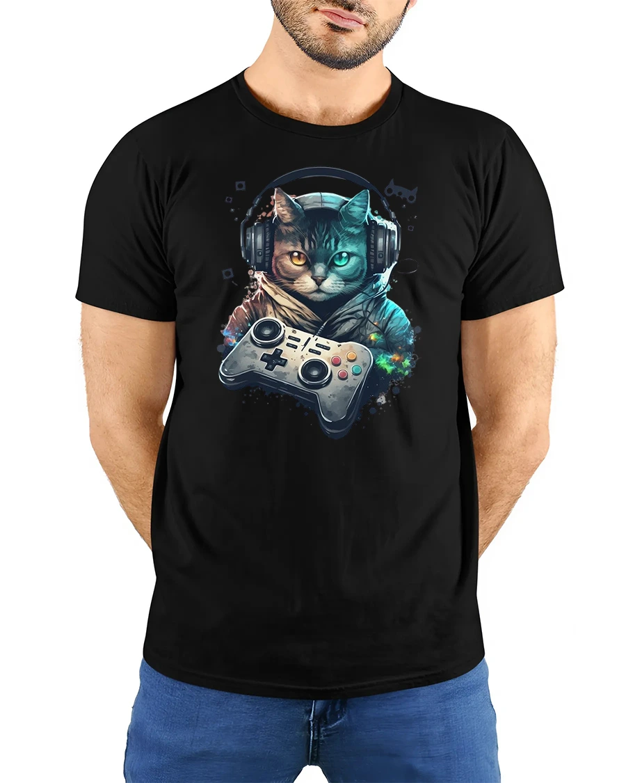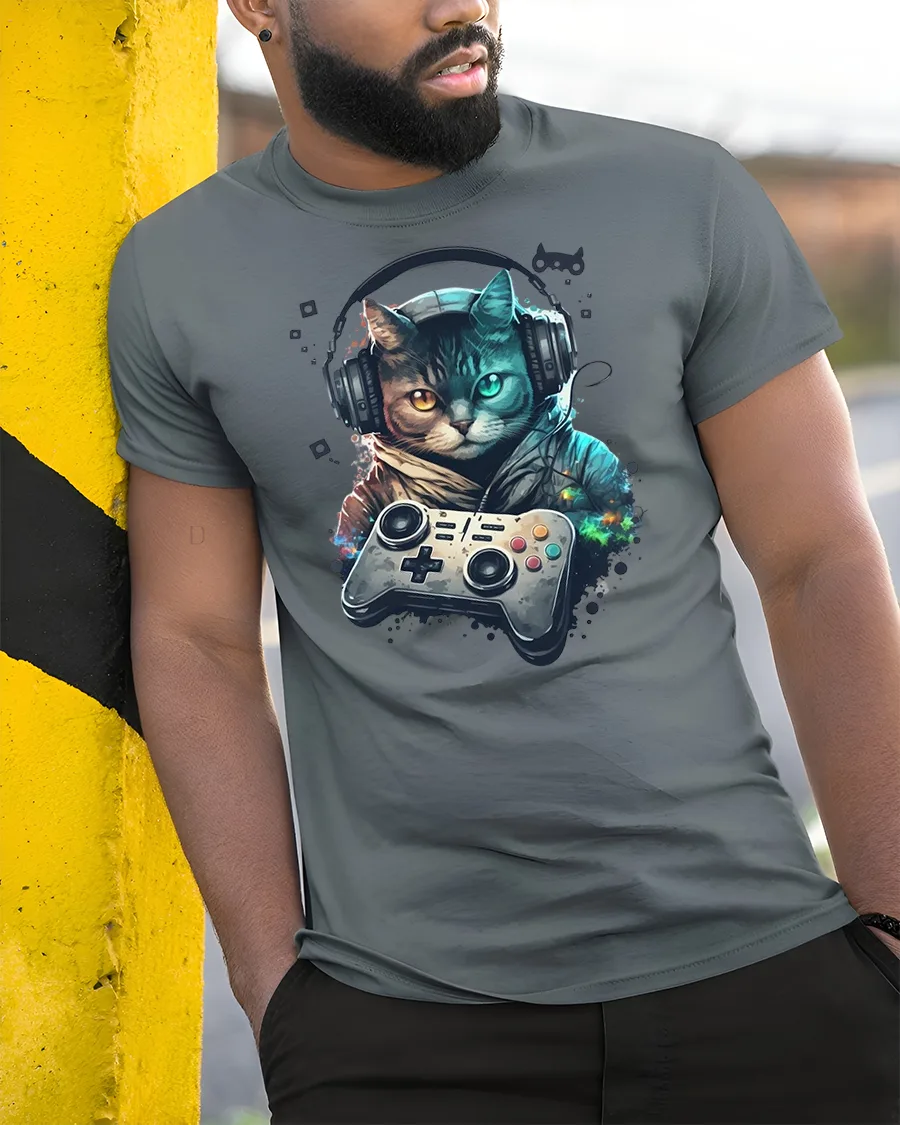 Wearing the Retro Gamer Cat Tee with Headphones and Neon Controller Art makes your outfit stand out effortlessly. The vivid color effects and dynamic composition add movement and depth, giving the tee a cool futuristic vibe. Whether relaxing at home, meeting friends, or heading to gaming events, this shirt adds comfort and personality to your everyday wardrobe.