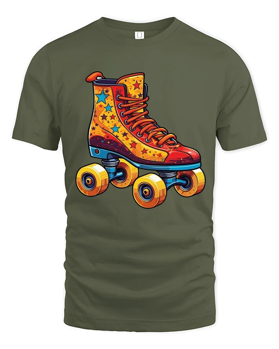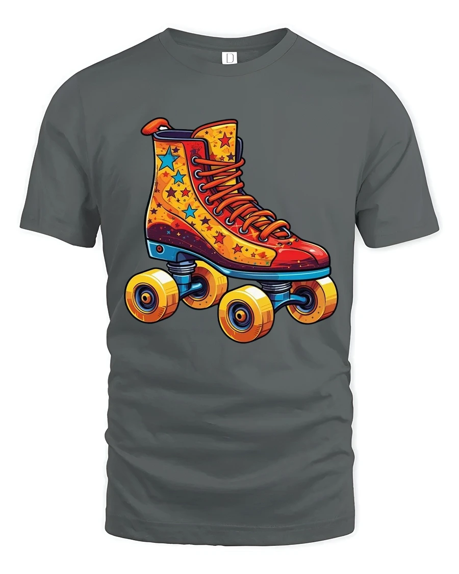 Retro Roller Skate Cartoon Tshirt Colorful Fun Vintage Vibes brings a lively and nostalgic design inspired by classic skating culture.