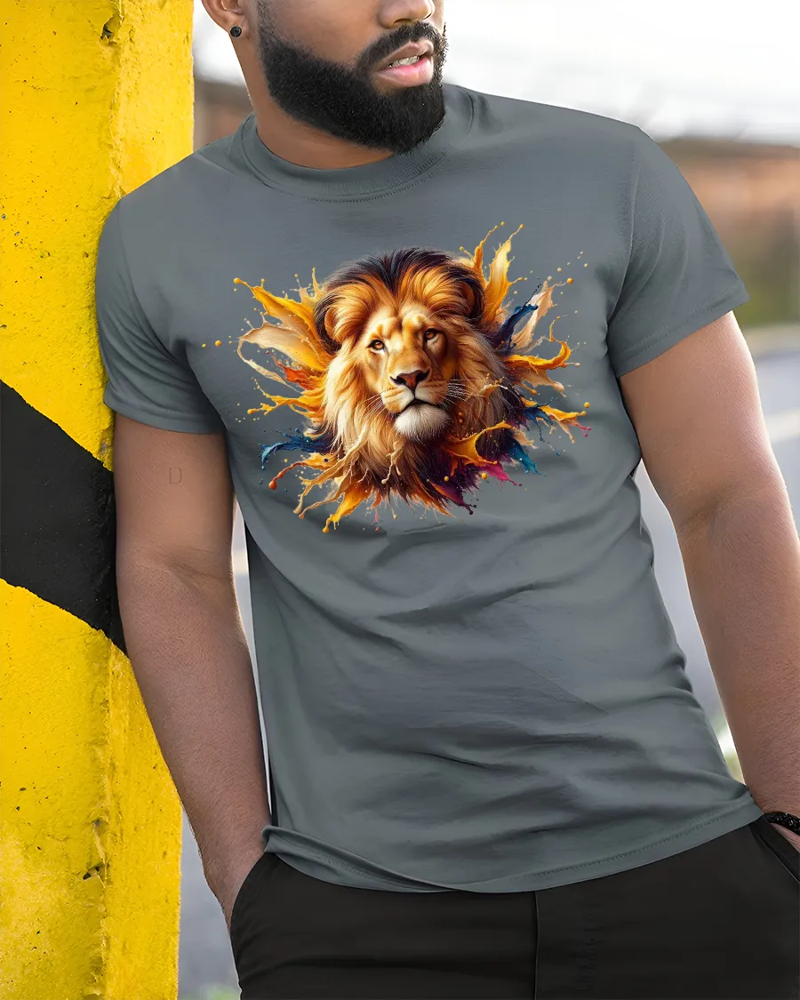 Unleash your inner strength with the Roaring Lion Head Splash Graphic Tee Bold Streetwear. Featuring a vibrant and artistic lion head surrounded by splashes of bold colors, this shirt symbolizes courage, pride, and power. Perfect for those who admire wildlife art and love making a fearless fashion statement.