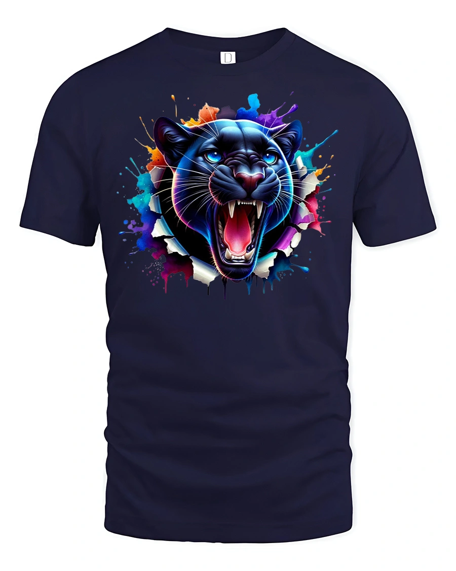 Unleash your wild side with the Roaring Panther Face Graphic T-Shirt for Men Women. This bold design features a fierce panther head breaking through with vibrant splatter art, making it the perfect choice for those who love strong, eye-catching styles. With its vivid details and roaring expression, this tee is all about confidence, power, and individuality.