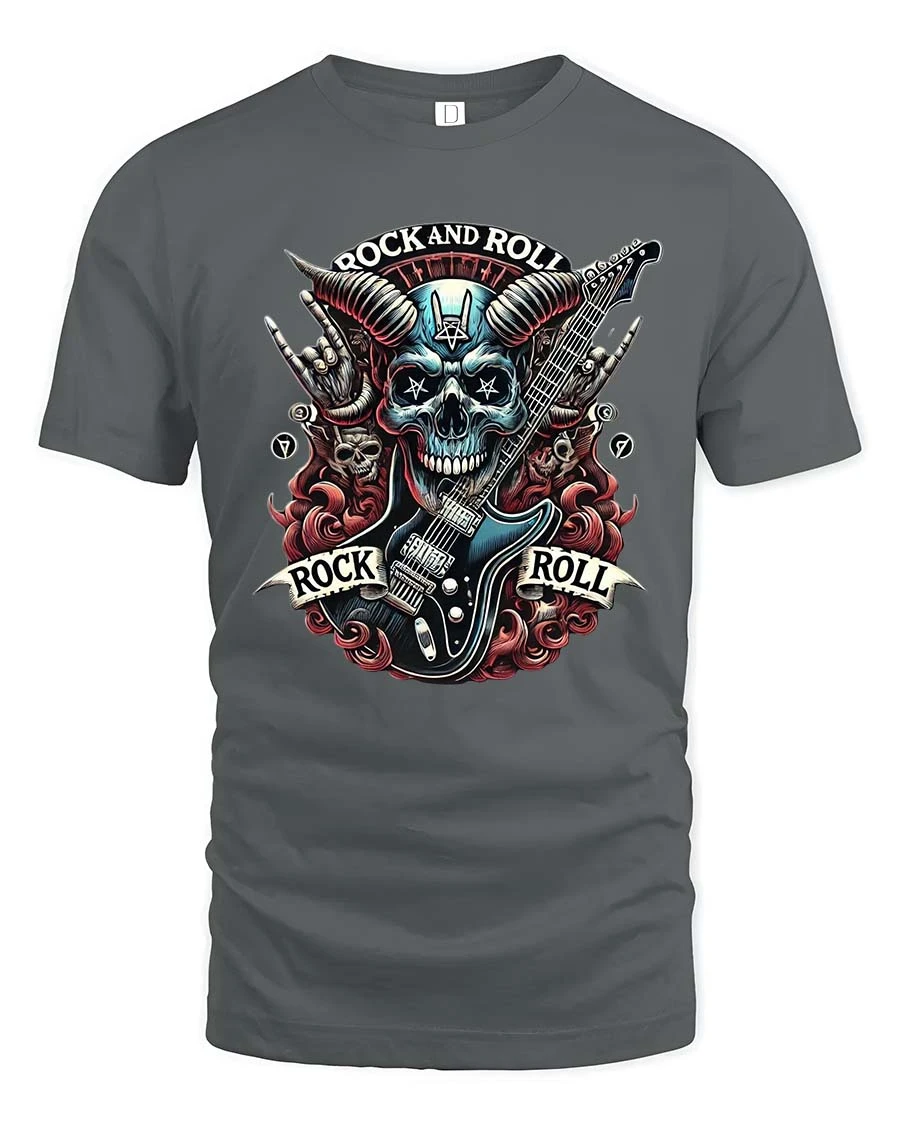 Rock And Roll Skull Guitar Heavy Metal Graphic T Shirt Art captures the raw spirit of rock music with an intense skull and electric guitar design.