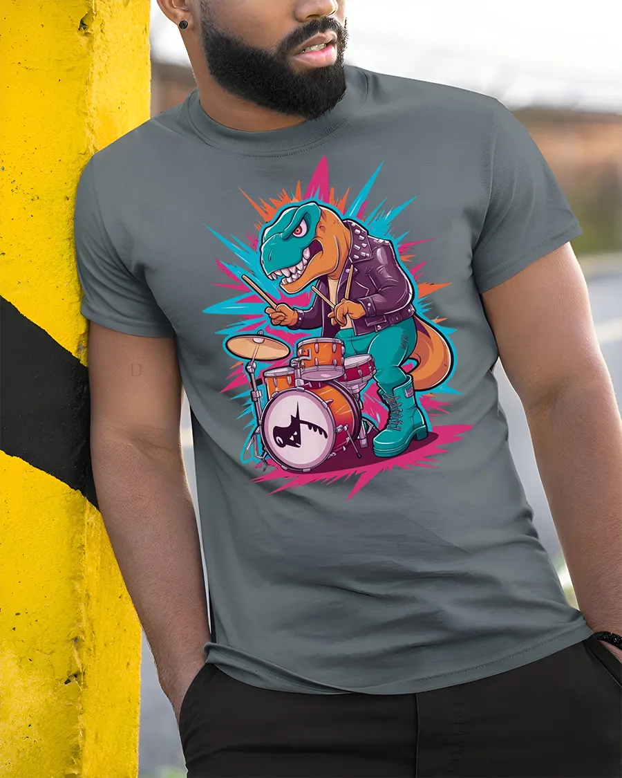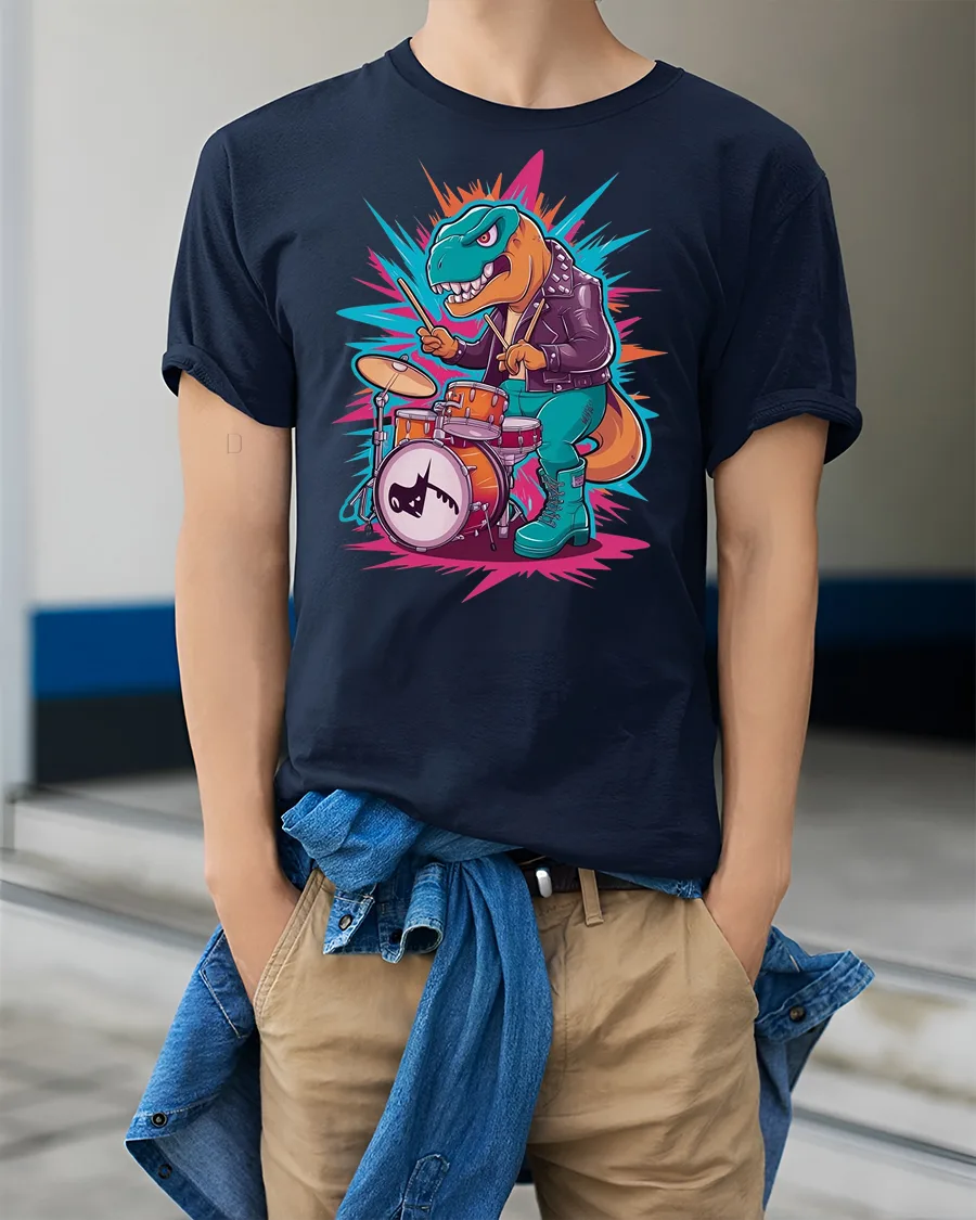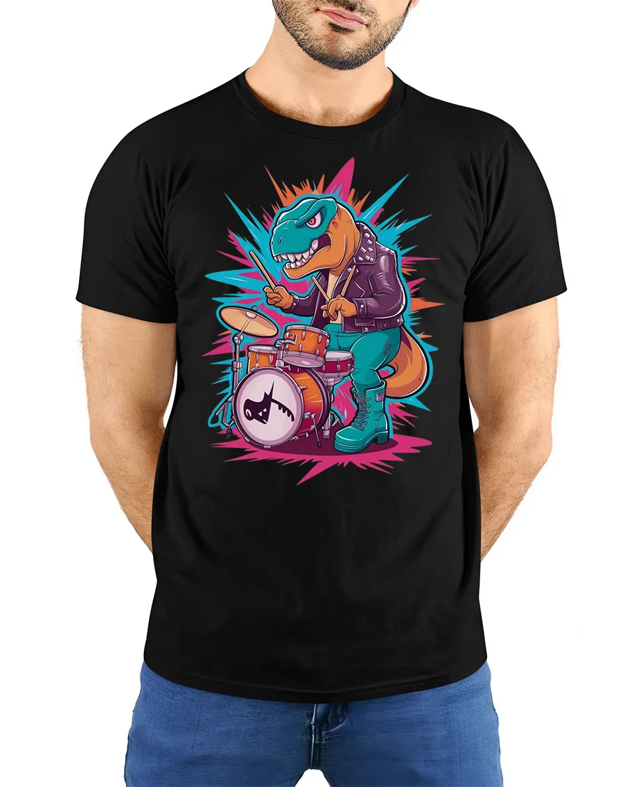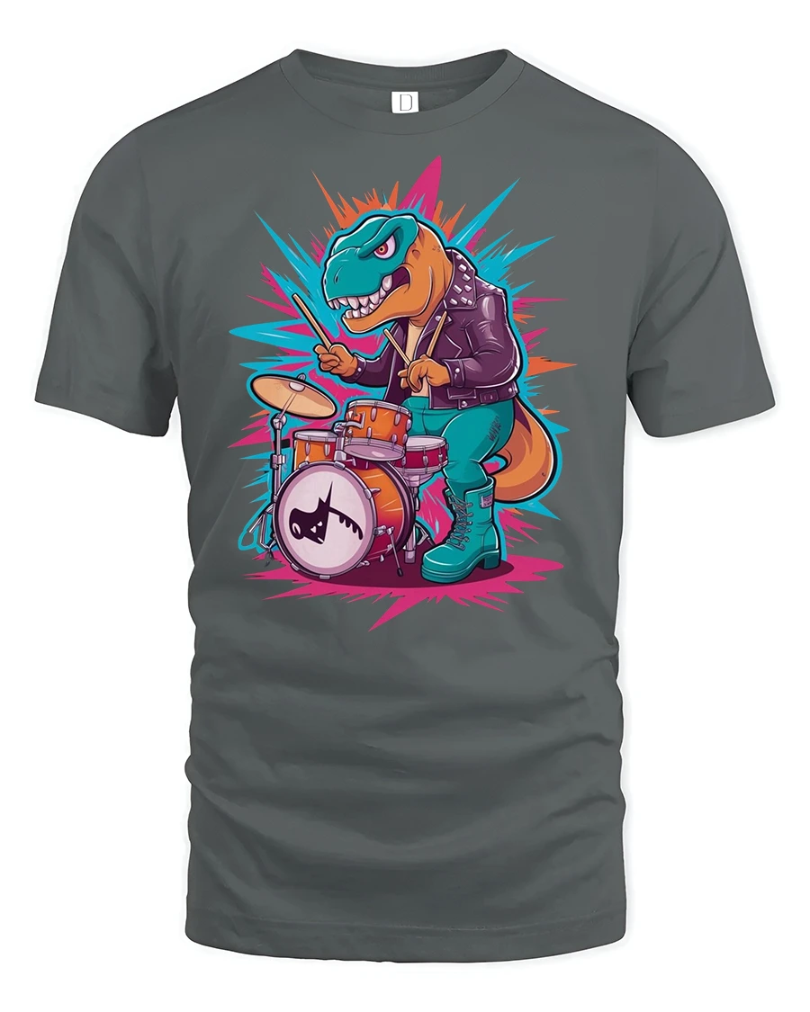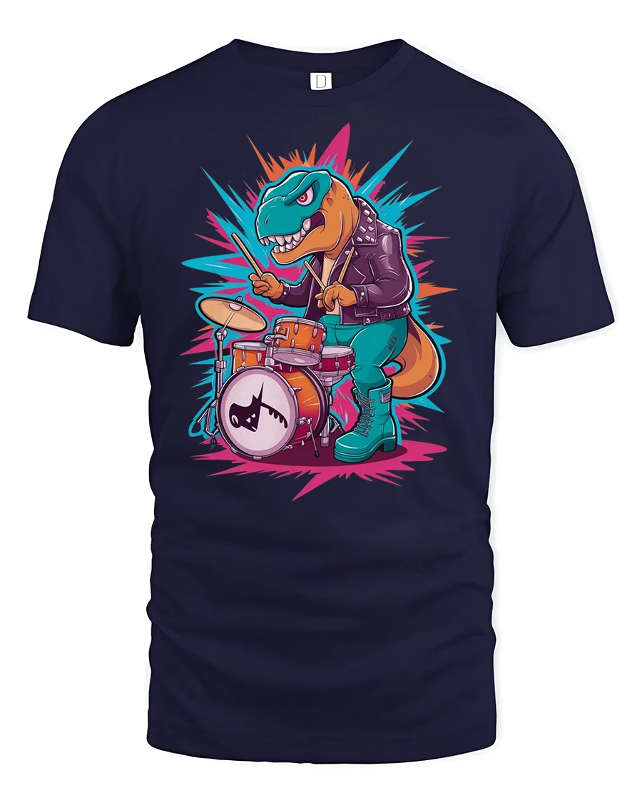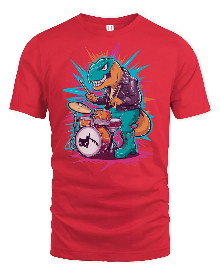 Made with comfort in mind, this dinosaur drummer tshirt is perfect for concerts, casual outings, parties, or just adding a fun twist to your everyday wardrobe. The bright and vibrant design makes it stand out, while the playful cartoon style ensures plenty of laughs and compliments. Whether you’re a drummer, a music lover, or just someone who enjoys quirky and unique tees, this design will strike the right chord.