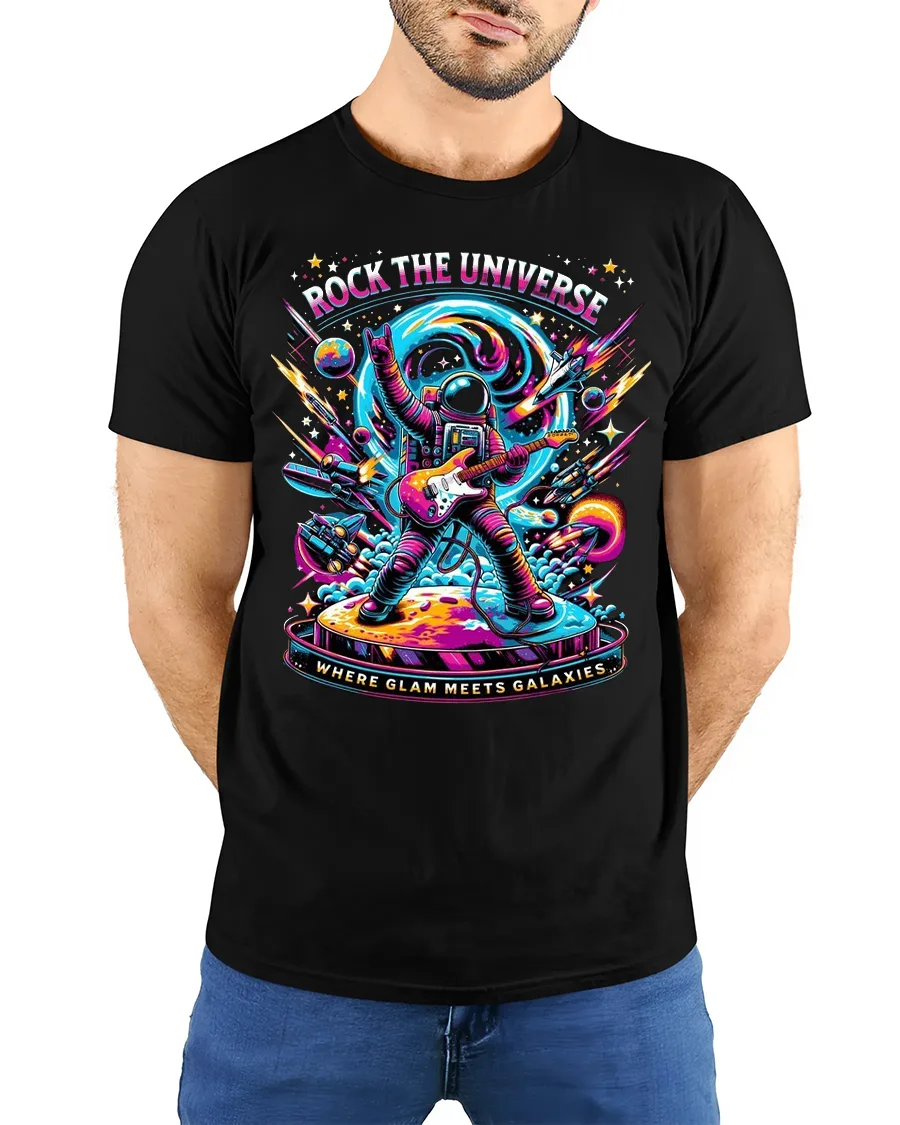 This Rock the Universe Astronaut Guitar Tee – Epic Space Graphic Tshirt delivers explosive cosmic energy, perfect for music lovers, space fans, and anyone who loves bold neon artwork. Featuring an astronaut shredding an electric guitar while standing on a planetary stage surrounded by rockets, stars, and swirling galactic colors, this design blends sci-fi and rock-and-roll attitude into one unforgettable graphic.