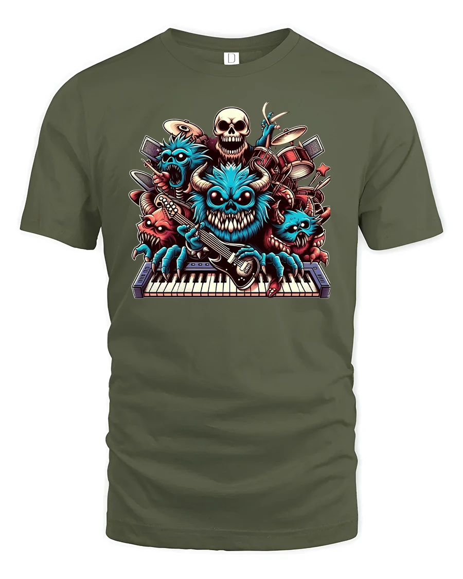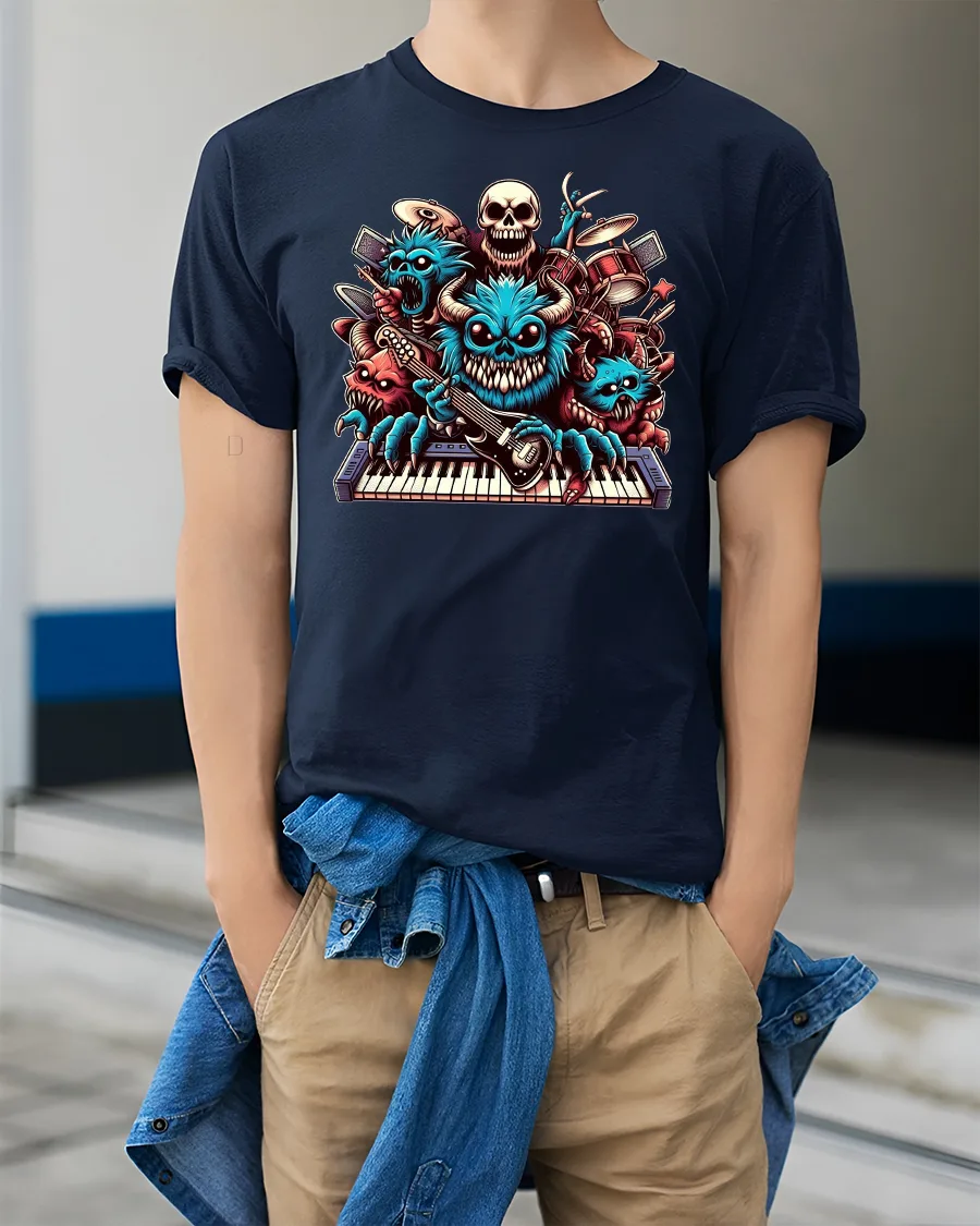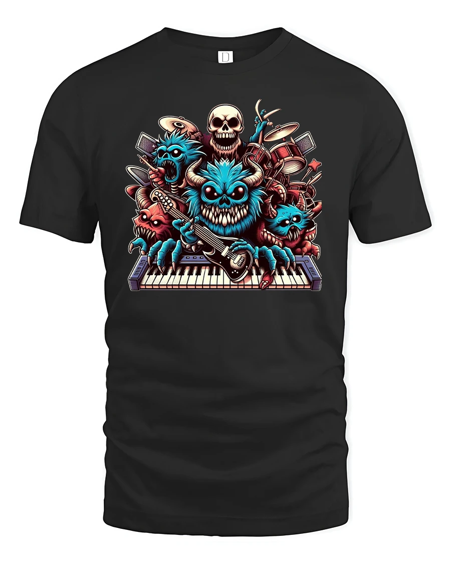 Turn up the volume with the Rockin’ Monster Band Keyboard Guitar Graphic Tee. Featuring a crew of wild, cartoon-style monsters shredding guitars, banging drums, and rocking the keyboard, this bold design is a perfect mix of music energy and playful humor. Every detail bursts with vibrant color and mischievous personality, making it a true standout piece for music lovers.